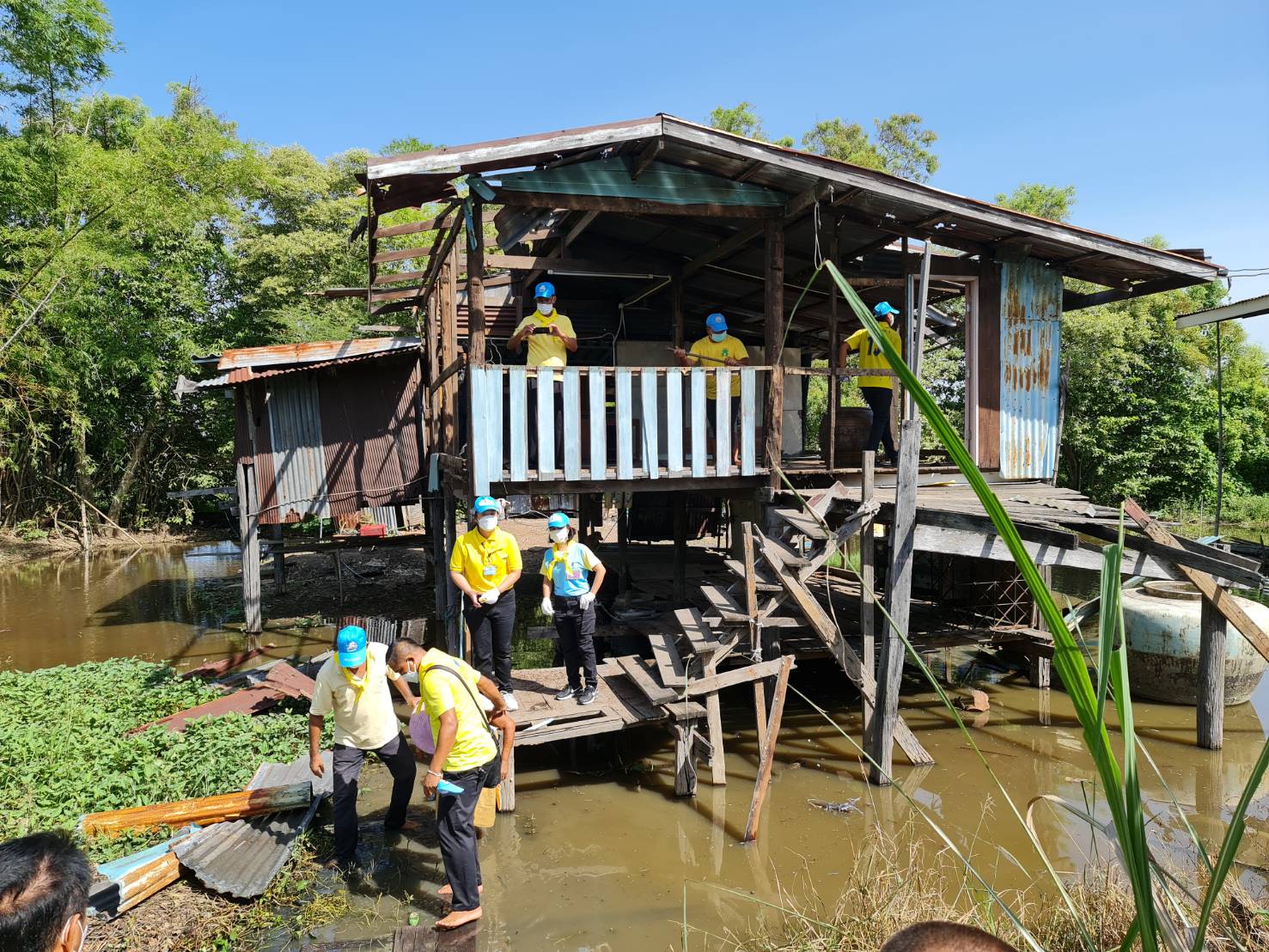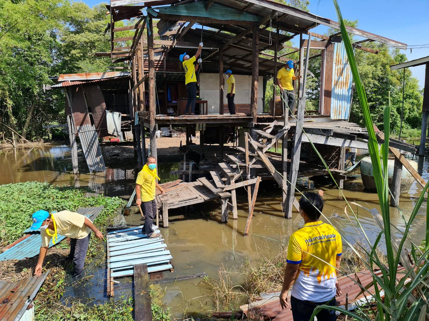 ที่บริเวณหมู่บ้าน(หนองเป็ด)หมู่.11-12.ตำบล ลำตาเสา อำเภอ วังน้อย จังหวัดพระนครศรีอยุธยา นาย สุรชัย โคตรบุตรดี นายอำเภอวังน้อย ปลัดอำเภอ กำนัน ผู้ใหญ่บ้าน จิตอาสา ร่วมมือเดินทางมาที่บ้าน นางเสริม จันพักตร์ อายุ 84 ปี ในพื้นที่หมู่ที่ 12 ตำบล ลำตาเสา มาช่วยรื้อบ้าน ที่ชำรุดทรุดโสม พุพังทั้งหลัง ฝนตกอยู่บ้านไม่ได้ รั่วทั้งหลังเร่งซ่อมบ้านให้แล้วเสร็จ ที่พุพัง หลังคาสังกะสี ที่กำลังที่กำลังจะพัง บันไดที่เดินลงก็พัง ได้เข้าไปช่วยนำคุณยายออกมาจากบ้าน เกรงจะได้รับอันตรายก่อนที่จะพังลง