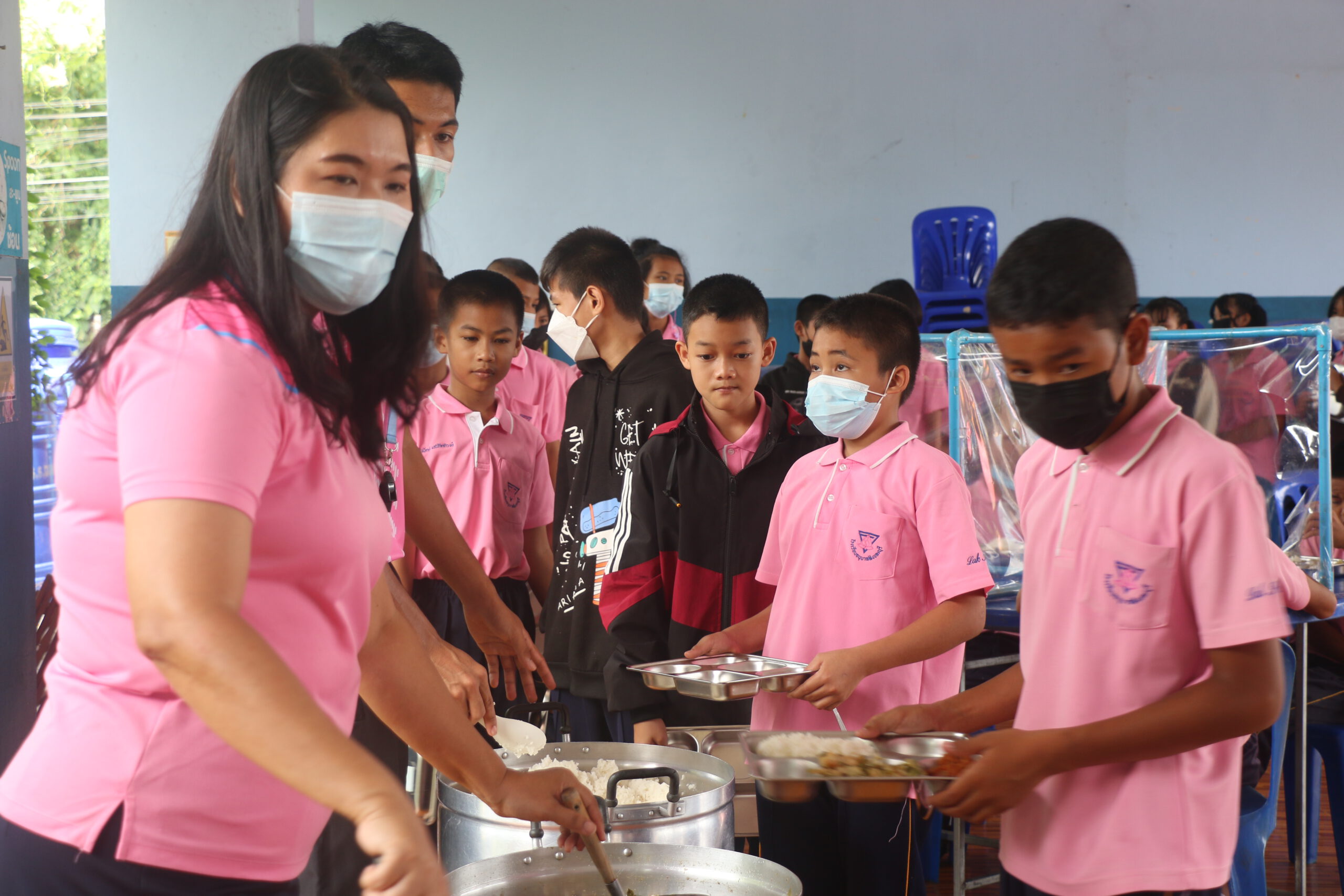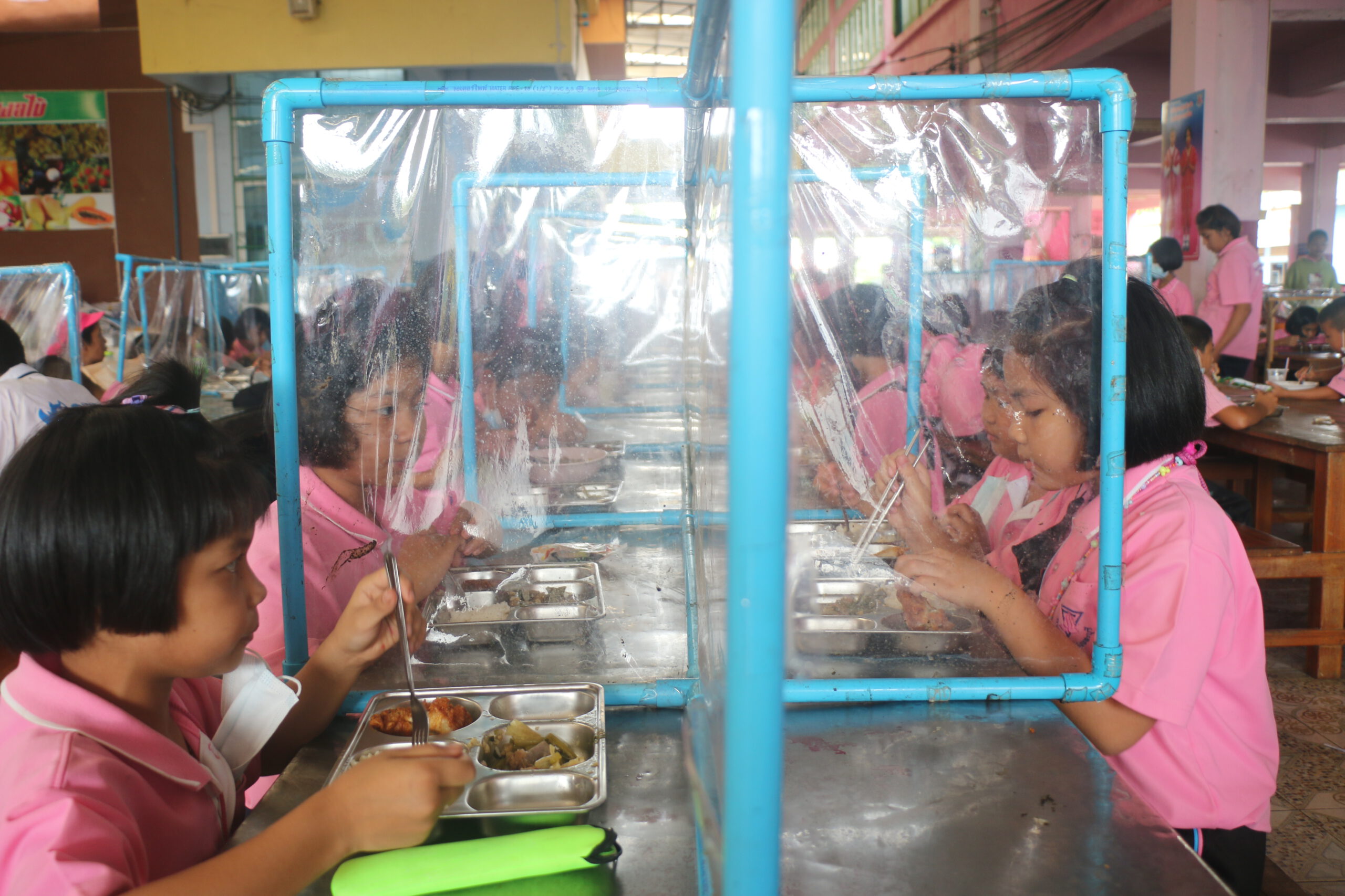 โดยในเวลา 11.00 น.จะเป็นระดับชั้น ป.1- ป.4 ส่วนเวลา 11.30 – 12.00 น ระดับชั้น ป.5 – ป. 6 ขณะที่ระดับอนุบาลจะจัดให้รับประทานในอาคารเรียนของอนุบาล และจะมีการแยกภาชนะ จาน ช้อน แก้วน้ำ เป็นของแต่ละบุคคล รวมทั้งให้นักเรียนดูแล ทำความสะอาดด้วยตัวเองภายใต้การดูแลของคุณครู