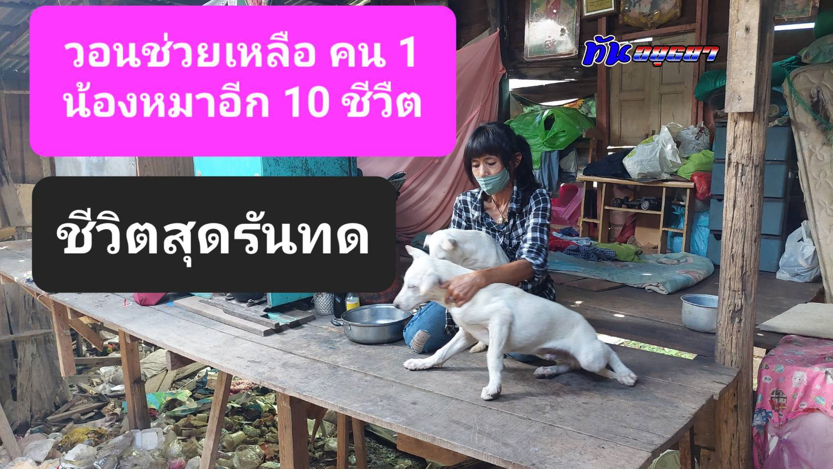 ชีวิตสุดรันทด คน 1 คนกับ น้องสุนัขอีกกว่า 10 ชีวิต ถูกงูเหลือม เลื้อยบุกหาถึงในมุ้งเป็นประจำ เหตุงูจะเข้ามากินสุนัข ด้วยเพราะว่ายากจนค้นแค้น บ้านไม่มีสภาพป้องกันภัย ด้วยบ้านไม้เก่าผุพังทั้งหลัง หลังคา ฝาบ้าน พื้นบ้านทะลุ ป้าจิบ บ้านแพน วัย 55 ปี อาชีพเก็บขวดและของเก่าขายประทังชีวิต ในตลาดบ้านแพน อ.เสนา จ.พระนครศรีอยุธยา