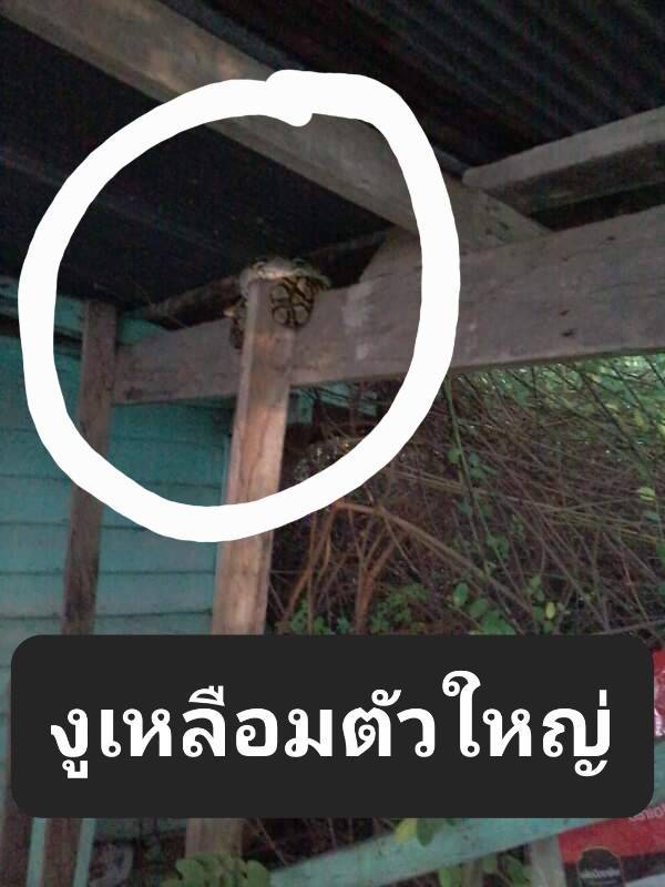นอกจากบ้านพังแล้ว ล่าสุดงูเหลือมขนาดใหญ่ ยังบุกมาหาถึงในบ้านข้างมุ้งเป็นประจำ เพราะตนเองนอนกางมุ้งกับสุนัข งูมันคงจะมากินลูกสุนัข
