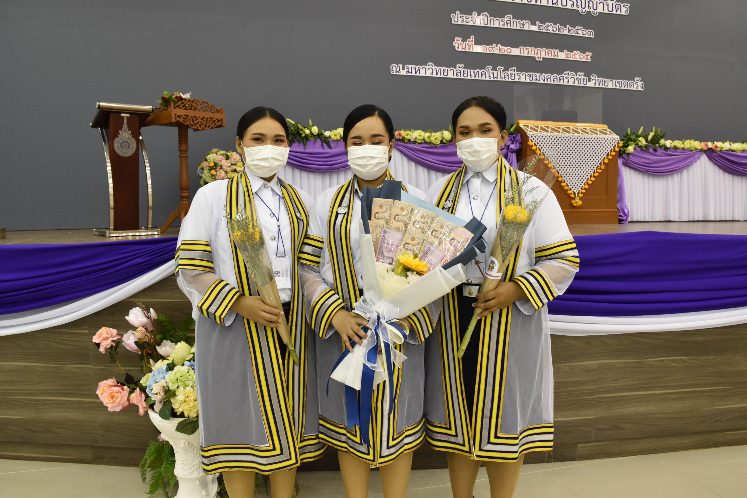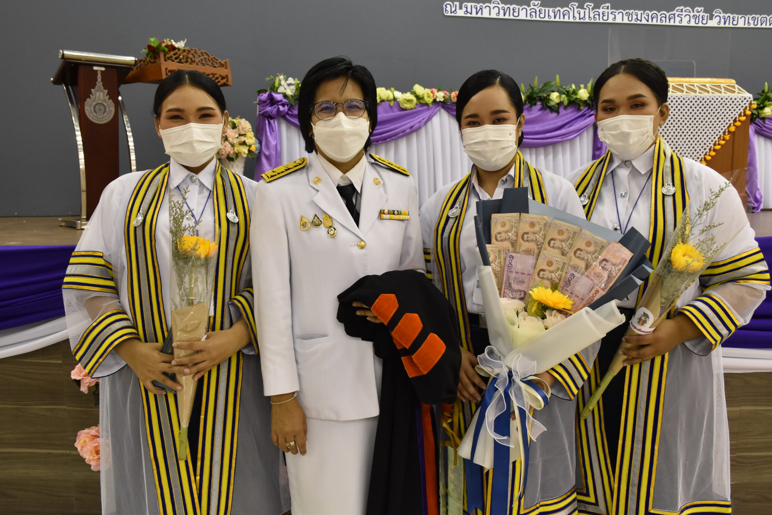 ขณะที่ ผศ.โกสินทร์ พัฒนมณี มหาวิทยาลัยเทคโนโลยีราชมงคลศรีวิชัย วิทยาเขตตรัง ได้กล่าวแสดงความยินดีกับบัณฑิตและได้ให้โอวาทเกี่ยวกับการใช้ชีวิตการทำงานนำความรู้ที่ได้ศึกษาเรียนรู้ไปใช้ให้เกิดประโยชน์และเป็นกำลังที่สำคัญในการพัฒนาตนเองช่วยเหลือดูแลครอบครัว และประเทศชาติต่อไป ซึ่งได้มีการเตรียมความพร้อมต้อนรับบัณฑิตและผู้ปกครองได้มีโอกาสเข้ามาร่วมแสดงความยินดี ถ่ายภาพร่วมกันเที่ยวชมบรรยากาศภายในมหาวิทยาลัยฯ โดยได้จัดบริการรถลากเพื่อรับส่งผู้ปกครองผู้เข้าร่วมแสดงความยินดีกับบัณฑิต จัดซุ้มถ่ายภาพเพื่อร่วมแสดงความยินดีกับรุ่นพี่บัณฑิตที่สำเร็จการศึกษา โดยมหาวิทยาลัยเทคโนโลยีราชมงคลศรีวิชัย ได้มีกำหนดจัดพิธีพระราชทานปริญญาบัตรแก่ผู้สำเร็จการศึกษาประจำปีการศึกษา 2562-2563 ระหว่างวันที่ 25-26 ก.ค. 2565 ณ ศูนย์ประชุมนานาชาติฉลองสิริราชสมบัติครบ 60 ปี อ.หาดใหญ่ จ.สงขลา