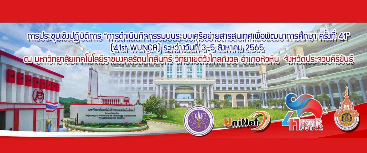 ขอเชิญผู้สนใจ เข้าร่วมงานประชุมเชิงปฏิบัติการ การดำเนินกิจกรรมระบบเครือข่ายสารสนเทศเพื่อพัฒนาการศึกษา ครั้งที่ 41 (WUNCA) ระหว่างวันที่ 3-5 สิงหาคม 2565 ณ มหาวิทยาลัยเทคโนโลยีราชมงคลรัตนโกสินทร์ วิทยาเขต วังไกลกังวล หัวหิน จังหวัด ประจวบคีรีขันธ์