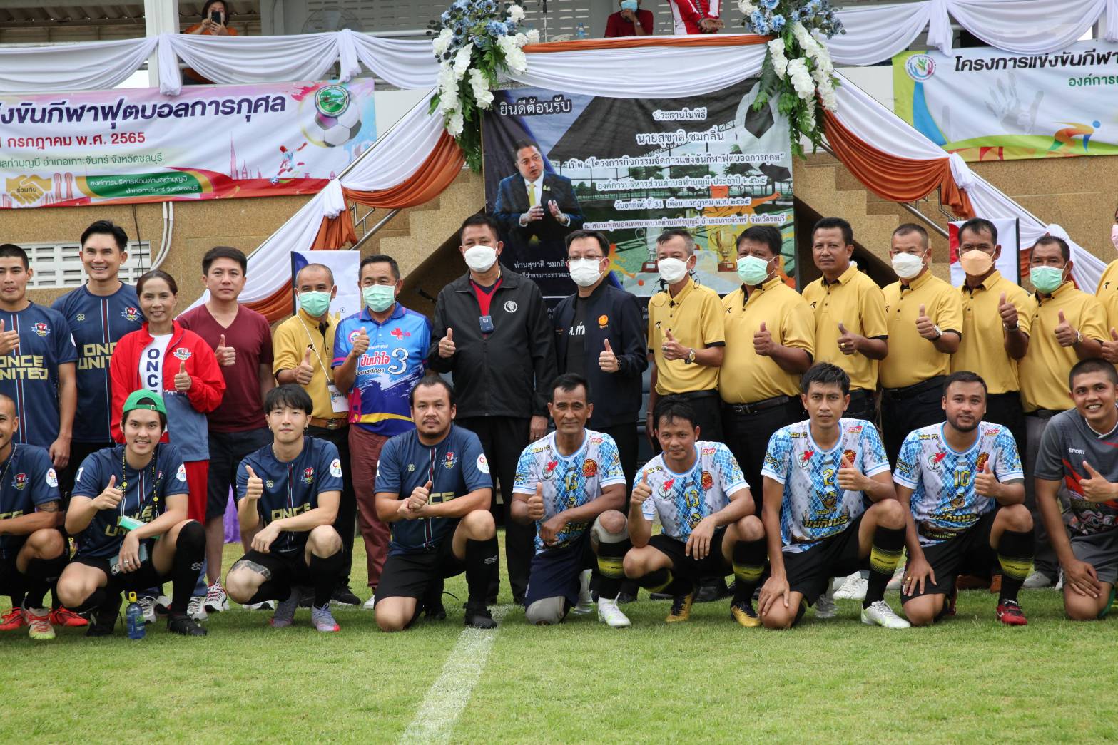 โดยมี นายวรจักร สถาพรพิญโญ นายอำเภอเกาะจันทร์ กล่าวรายงาน พร้อมด้วย พ.ต.อ.ศิระ กิจสถาน ผู้กำกับการสถานีตำรวจภูธรอำเภอเกาะจันทร์, นายสมยศ พนัสอนุสรณ์ นายก อบต. ท่าบุญมี, นายศรีรัฐ ศรีจันทร์ฉาย นายกเทศมนตรีตำบลท่าบุญมี และบอสวัน ลาวัณย์ จเรวงศ์ ประธาน ออล แดท วันซ์ ผู้สนับสนุนนำทีมฟุตบอลนักแสดงจิตอาสา Once United ร่วมพิธีเปิดการแข่งขัน