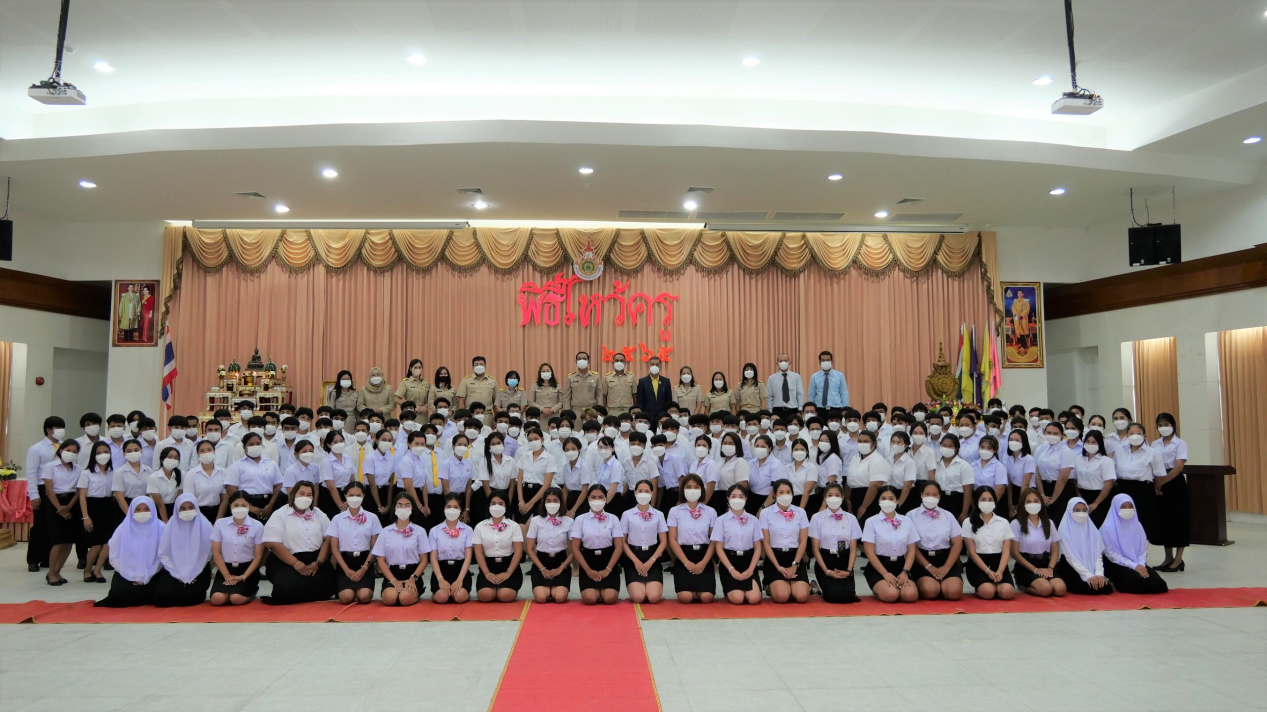 เมื่อวันที่ 4 สิงหาคม 2565 พิธีไหว้ครู ณ วิทยาลัยเทคโนโลยีอุตสาหกรรมและการจัดการ มทร.ศรีวิชัย วิทยาเขตนครศรีธรรมราช พื้นที่ขนอม ประจำปีการศึกษา 2565 โดยมี คณะผู้บริหาร นำโดย นายทวีศักดิ์ ศรีภูงา ผู้อำนวยการฯ อาจารย์ บุคลากร เข้าร่วมพิธี จัดโดย สโมรสรนักศึกษา ฝ่ายพัฒนานักศึกษา ณ ห้องประชุมรองศาสตราจารย์ประชีพ ชูพันธ์ อาคารเฉลิมพระเกียรติ ต.ท้องเนียน อ.ขนอม จ.นครศรีธรรมราช