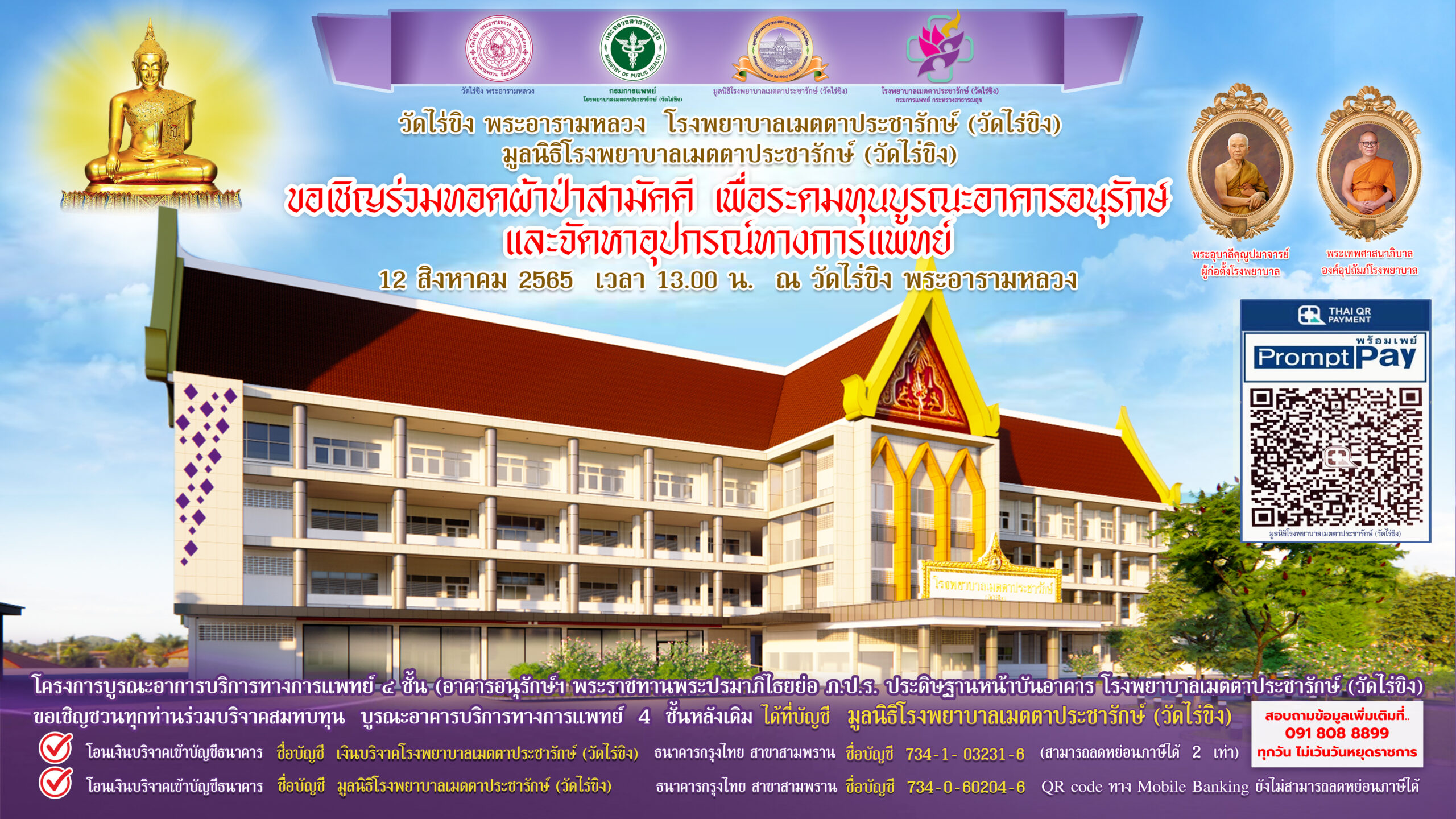 โรงพยาบาลเมตตาประชารักษ์ (วัดไร่ขิง) ขอเชิญร่วมเป็นเจ้าภาพทอดผ้าป่าสามัคคี