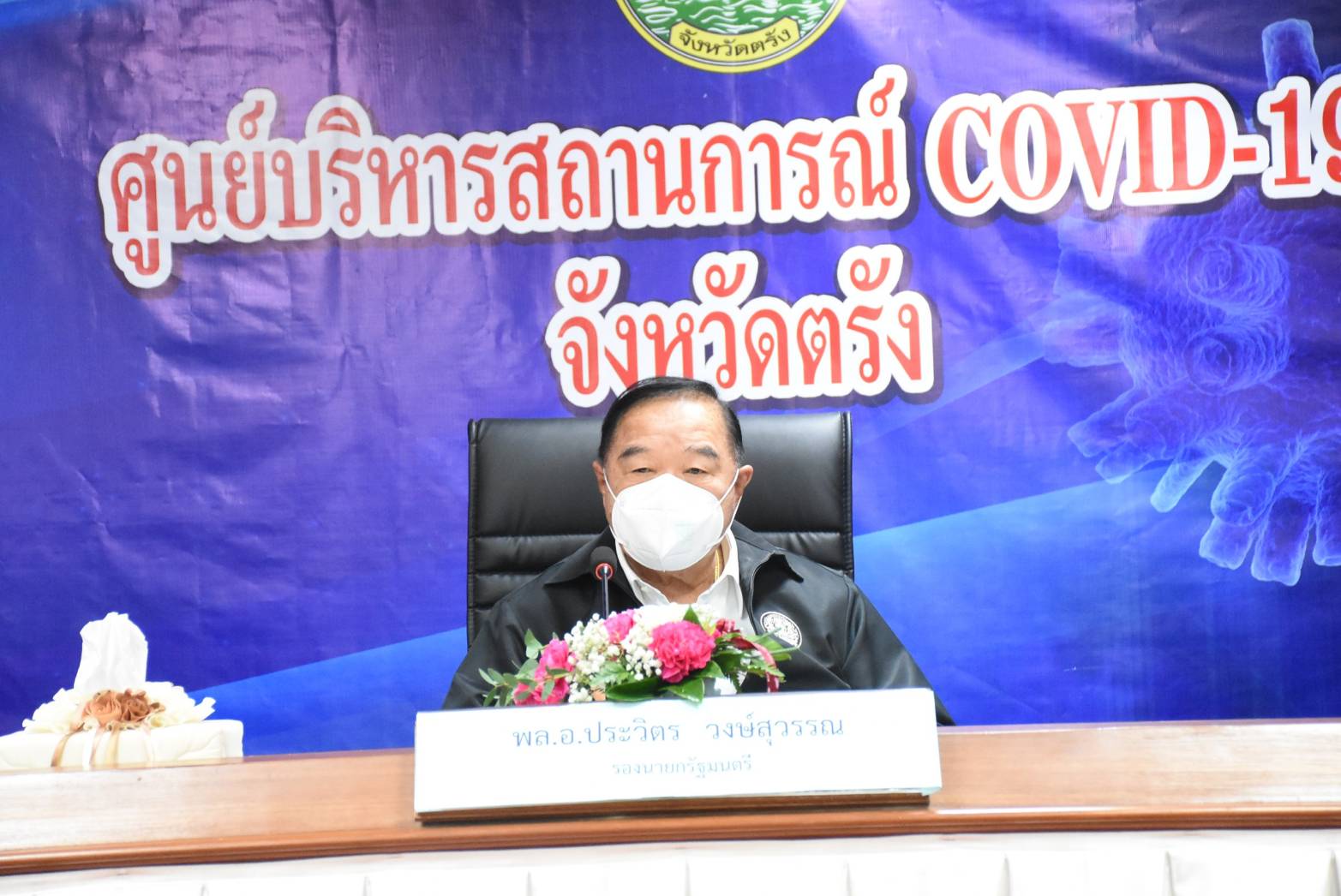 ที่ห้องประชุมพระยารัษฎา ชั้น 5 ศาลากลางจังหวัดตรัง พลเอก ประวิตร วงษ์สุวรรณ รองนายกรัฐมนตรี พร้อมคณะลงพื้นที่จังหวัดตรัง เพื่อรับทราบสถานการณ์น้ำและเตรียมความพร้อมรับมือสถานการณ์น้ำที่อาจจะเกิดขึ้น รวมถึงการวางแผนบริหารจัดการน้ำให้เกิดประสิทธิภาพทั้งในระยะสั้นและระยะยาว พร้อมรับทราบผลการปฏิบัติราชการของหน่วยงานที่เกี่ยวข้อง โดยมี นายขจรศักดิ์ เจริญโสภา ผู้ว่าราชการจังหวัดตรัง กล่าวต้อนรับ และสรุปภาพรวมสถานการณ์น้ำในพื้นที่จังหวัดตรัง นายจรศักดิ์ เจริญโสภา ผู้ว่าราชการจังหวัดตรัง ได้รายงานว่าจังหวัดตรังมีประชากรจำนวน 639,708 คน ตั้งอยู่ในพื้นที่ 3 ลุ่มน้ำ ได้แก่ ลุ่มน้ำภาคใต้ฝั่งตะวันตก ลุ่มน้ำภาคใต้ฝั่งตะวันออกตอนบน และลุ่มน้ำทะเลสาบสงขลา โดยพื้นที่ส่วนใหญ่ ร้อยละ 97.90 ตั้งอยู่ในลุ่มน้ำภาคใต้ฝั่งตะวันตก