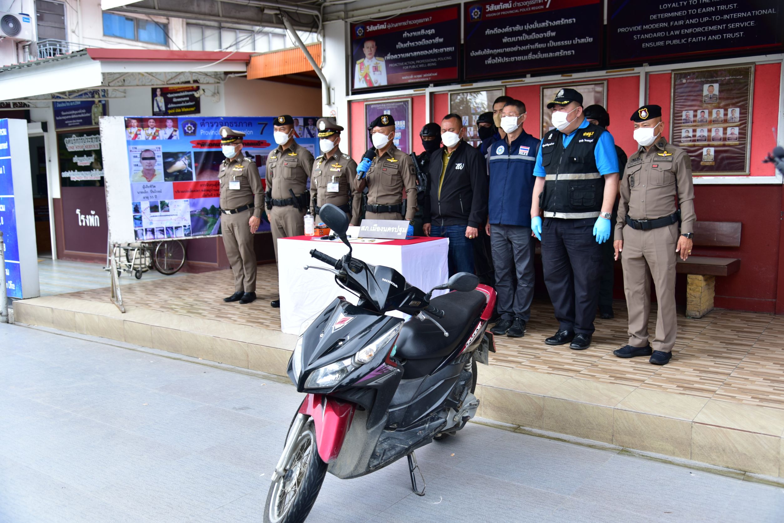 พล.ต.ท.ธนายุตม์ วุฒิจรัสธำรงค์ ผู้บัญชาการตำรวจภูธรภาค7 นำทีมชุดคลี่คลายคดี พร้อมด้วย พล.ต.ต.ชมชวิณ ปุระธนานนท์ ผู้บังคับการตำรวจภูธรจังหวัดนครปฐม พ.ต.อ.พงษกร อุปพงษ์ รองผู้บังคับการตำรวจภูธรจังหวัดนครปฐม,พ.ต.อ.ไพบูลย์ แพรสีนวล ผู้กำกับการ สภ.เมืองนครปฐม พร้อมเจ้าหน้าที่ที่เกี่ยวข้อง ร่วมแถลงผลการจับกุมผู้ต้องหาก่อเหตุยิง นายเล็ก ปิ่นโรจน์ อายุ 55 ปี อดีตผู้ช่วยผู้ใหญ่บ้าน