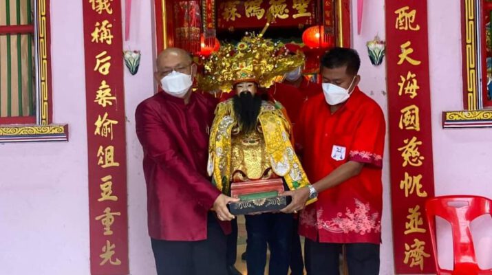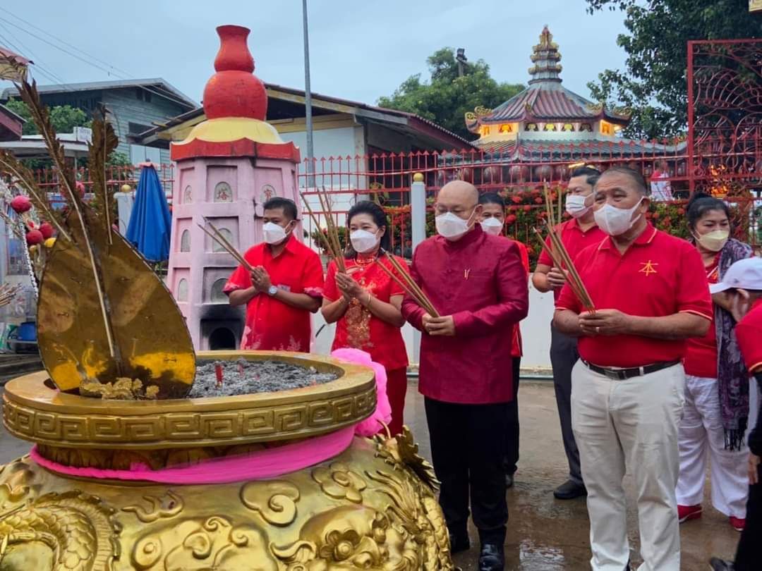 นายประสิทธิ์ พุ่มไม้ชัยพฤกษ์ วัฒนธรรมจังหวัดสิงห์บุรี กรรมการเหล่ากาชาดจังหวัดสิงห์บุรี และคณะกรรมการศาลเจ้าฯ เข้าร่วมพิธีไหว้เจ้า ณ ศาลเจ้าบุญเถ้ากงม่าสิงห์บุรี ฝั่งตะวันออก ริมแม่น้ำเจ้าพระยา อำเภอเมืองสิงห์บุรี จังหวัดสิงห์บุรี เพื่อสืบทอดประเพณีอันดีงามของชาวไทยเชื้อสายจีนและเป็นศูนย์รวมใจ ของชาวตลาดสิงห์บุรี โดยงานประเพณีอันเชิญเทพเจ้าของชาวตลาดสิงห์บุรี จัดขึ้นตั้งแต่วันที่ 7 ถึงวันที่ 13 สิงหาคม 2565