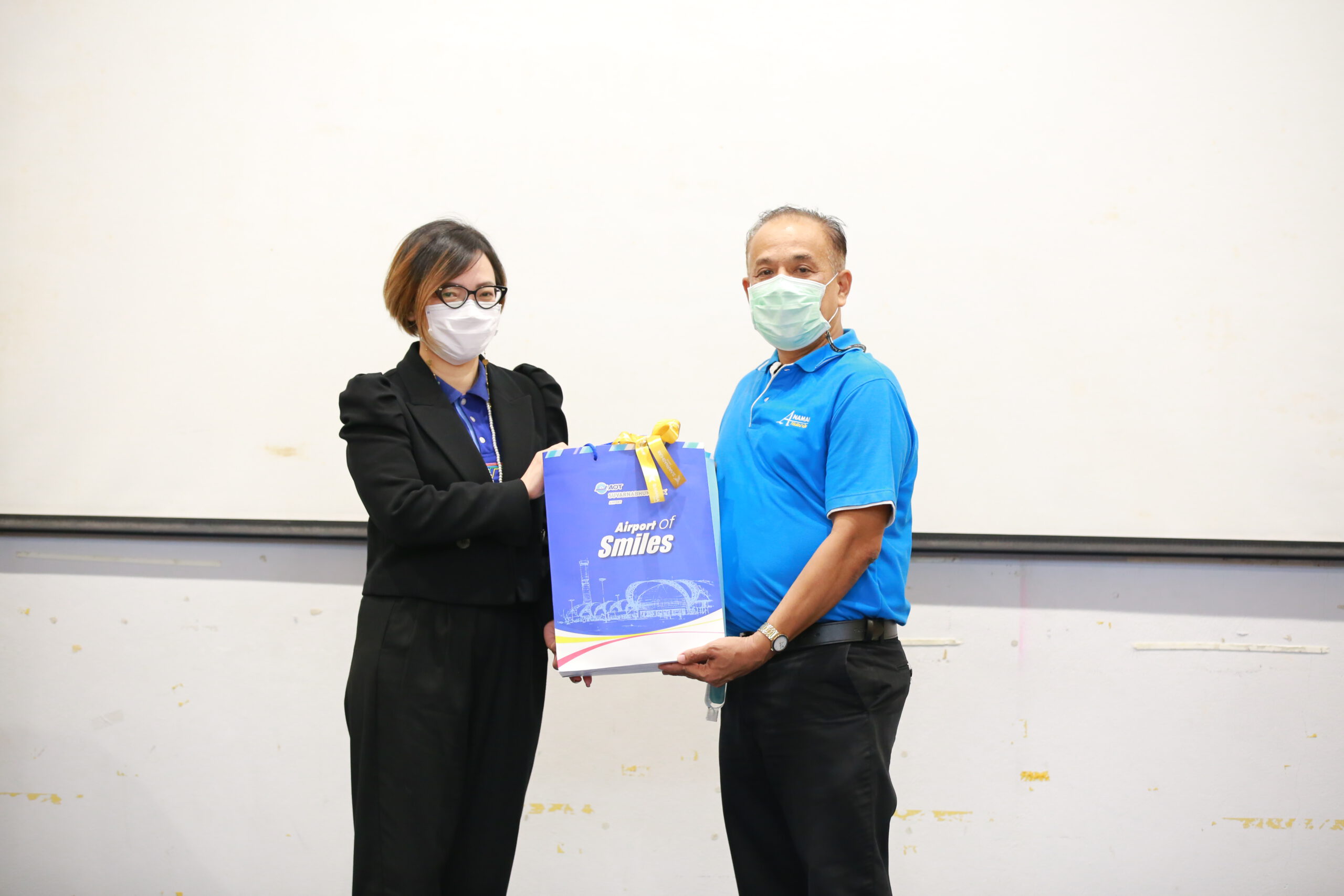 *****เมื่อเวลา 10.00 น. วันที่ 10 ส.ค.2565 ท่าอากาศยานสุวรรณภูมิ (ทสภ.) ร่วมกับองค์การบริหารส่วนตำบลหนองปรือ จัดอบรมหลักสูตร “มาตรฐานสุขาภิบาลอาหารสำหรับผู้สัมผัสอาหาร ภายในท่าอากาศยานสุวรรณภูมิ ตามกฎกระทรวง สุขลักษณะของสถานที่จำหน่ายอาหาร พ.ศ.2561” โดยมี นางสาวสิดาพร เครือคำ รองปลัดองค์การบริหารส่วนตำบลหนองปรือ เป็นประธานในการเปิดการอบรม บรรยายโดย วิทยากรนักวิชาการสาธารณสุข จากกรมอนามัย กระทรวงสาธารณสุข ซึ่งภายในงาน นางอธิชา เฉลิมวรรณ์ รองผู้อำนวยการฝ่ายการพาณิชย์ ทสภ. บริษัท ท่าอากาศยานไทย จำกัด (มหาชน) (ทอท.) เป็นผู้แทน ทสภ. มอบของที่ระลึกให้แก่ วิทยากรในพิธีเปิดการอบรมฯ ณ ห้องประชุม Auditorium สถานีดับเพลิงและกู้ภัย ทสภ.