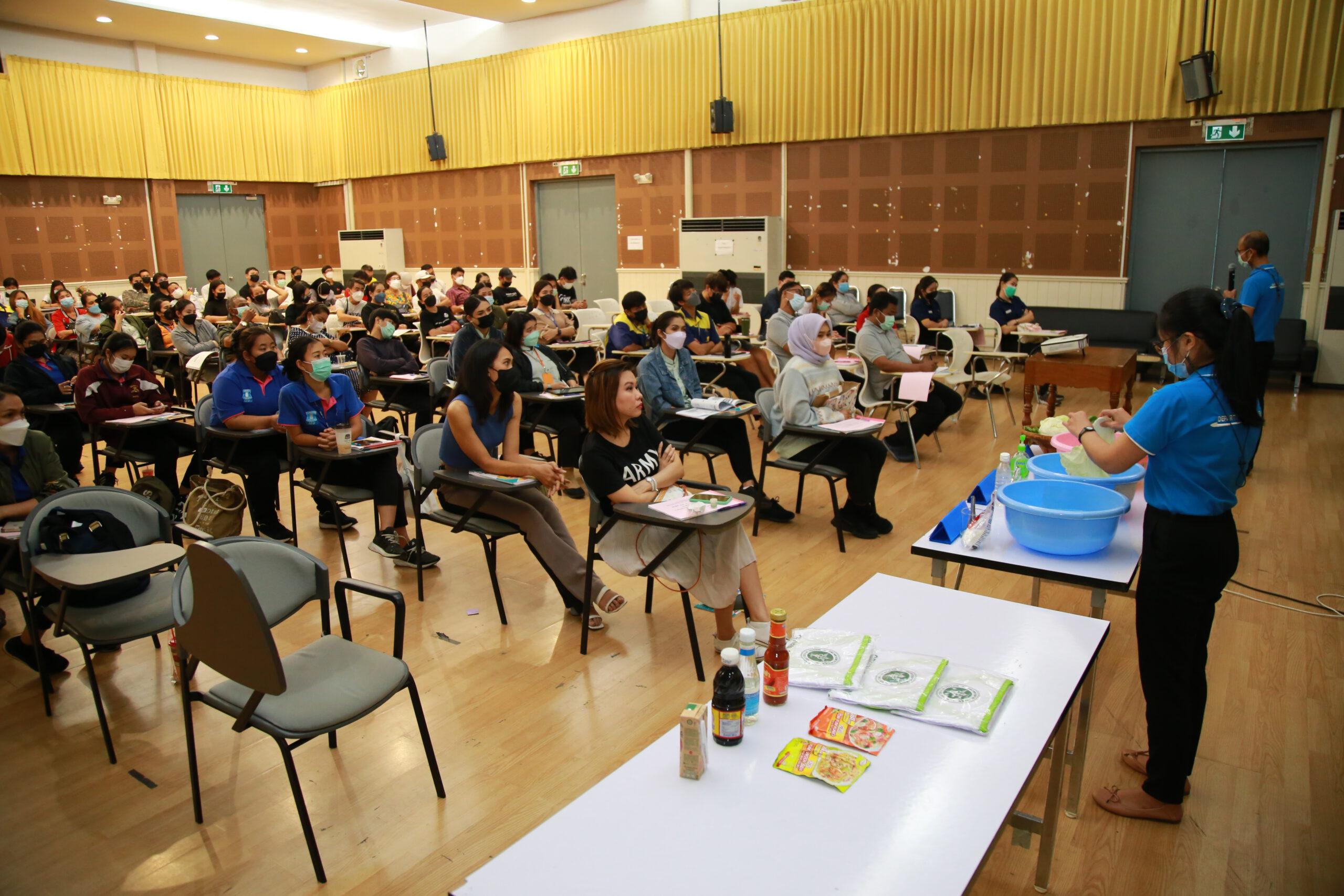 *****การอบรมฯ จัดขึ้นระหว่างวันที่ 10 – 11 สิงหาคม 2565 เวลา 08.30 – 16.00 น. จำนวน 2 รุ่น รุ่นละ 90 คน รวม 180 คน โดยมีผู้เข้ารับการฝึกอบรมดังกล่าวเป็นพนักงานผู้ปรุงและผู้เสิร์ฟอาหารจากร้านอาหารภายในอาคารผู้โดยสาร ศูนย์อาหาร Magic Food Point และร้านสะดวกซื้อ (มินิมาร์ท) ทั้งนี้ ทสภ. ได้ให้ความสำคัญอย่างยิ่งในการพัฒนาความรู้ ความเข้าใจ ทางด้านมาตรฐานสุขาภิบาลที่ถูกต้อง เพื่อให้ผู้เข้ารับการอบรมสามารถนำความรู้ที่ได้รับไปประยุกต์ใช้กับสถานประกอบการของตนเอง เป็นการยกระดับมาตรฐานของผู้สัมผัสอาหารที่ปฏิบัติงานภายในร้าน ตลอดจนนำไปสู่การได้รับรองมาตรฐานอาหารสะอาด รสชาติอร่อย (Clean Food Good Taste) ซึ่งจะสร้างความเชื่อมั่นและส่งผลให้ผู้โดยสารที่มาใช้บริการร้านอาหารและร้านค้าภายใน ทสภ. มีสุขภาพดี ซึ่งเป็นแนวทางปฏิบัติที่ ทสภ. กรมอนามัย กระทรวงสาธารณสุขและองค์การบริหารส่วนตำบลหนองปรือ จังหวัดสมุทรปราการ ได้ร่วมกันดำเนินการมาอย่างต่อเนื่อง