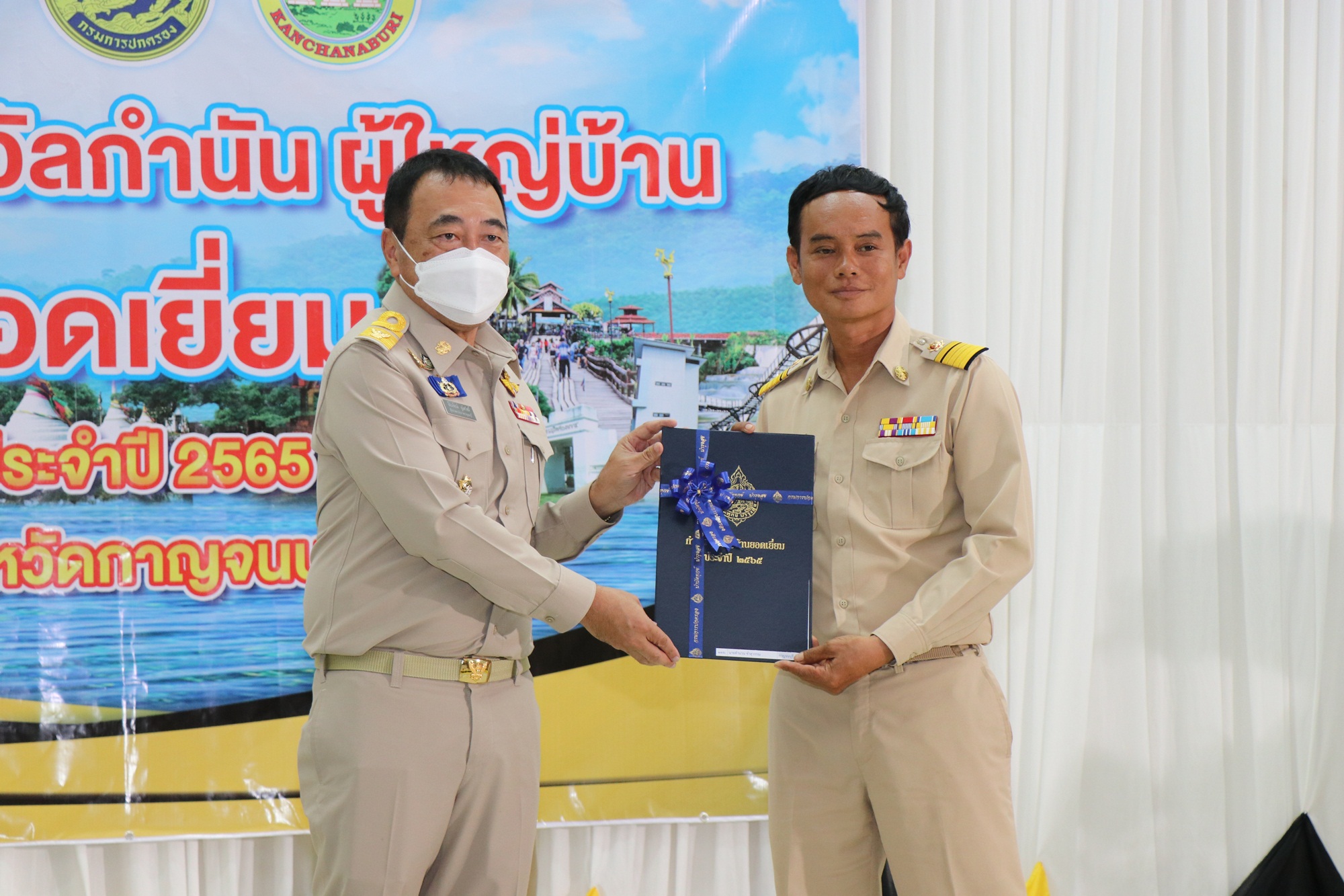 ทั้งนี้ กระทรวงมหาดไทย ได้จัดให้มีการมอบรางวัลแก่กำนัน ผู้ใหญ่บ้าน แพทย์ประจำตำบล สารวัตรกำนัน และผู้ช่วยผู้ใหญ่บ้าน ที่มีผลงานดีเด่น เพื่อเป็นการสร้างขวัญกำลังใจในการปฏิบัติงานเป็นประจำทุกปี จังหวัดกาญจนบุรี โดยคณะกรรมการคัดเลือกกำนัน ผู้ใหญ่บ้านแพทย์ประจำตำบล สารวัตรกำนัน และผู้ช่วยผู้ใหญ่บ้าน จึงได้เปิดรับการเสนอชื่อและพิจารณาคัดเลือกและผลการพิจารณาคัดเลือกผู้ได้รับรางวัล กำนัน ผู้ใหญ่บ้าน ยอดเยี่ยม ประจำปี 2565 ของจังหวัดกาญจนบุรี มีจำนวน 4 ราย ดังนี้