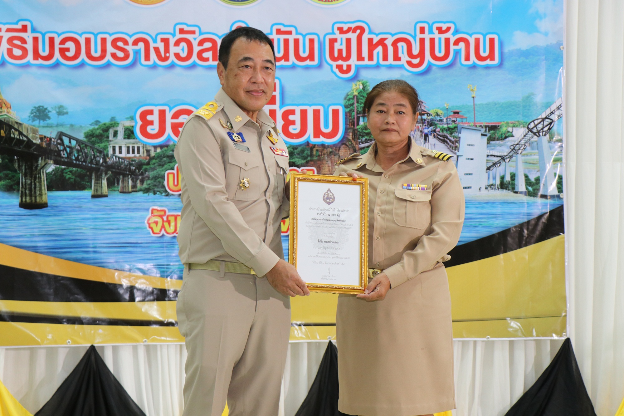 กาญจนบุรี ผู้ว่าราชการจังหวัดกาญจนบุรีมอบรางวัลกำนัน ผู้ใหญ่บ้าน ยอดเยี่ยม ประจำปี 2565 จำนวน 4 ราย เพื่อเป็นขวัญกำลังใจและเป็นตัวอย่างในการปฏิบัติหน้าที่อย่างเต็มความสามารถ