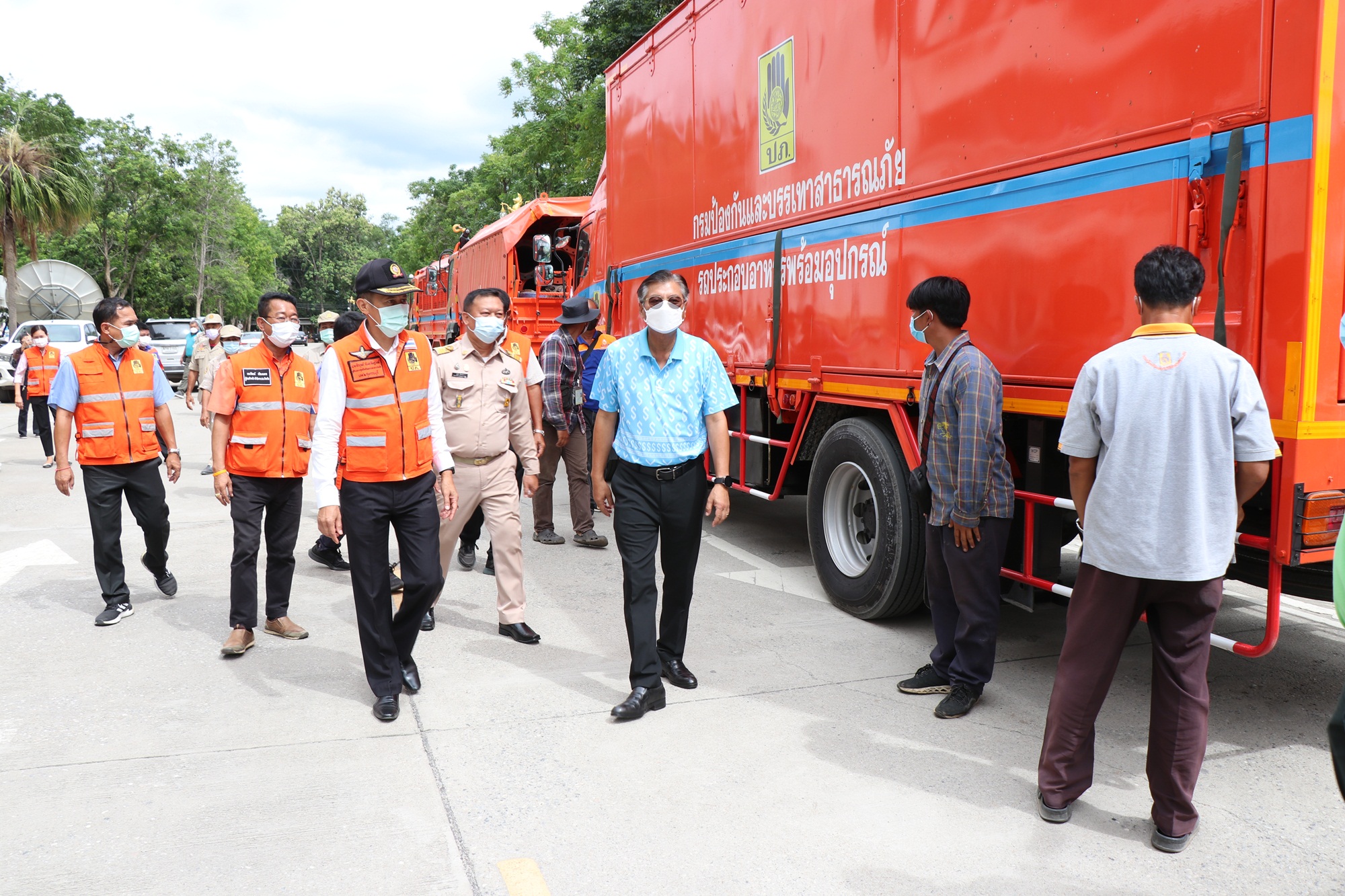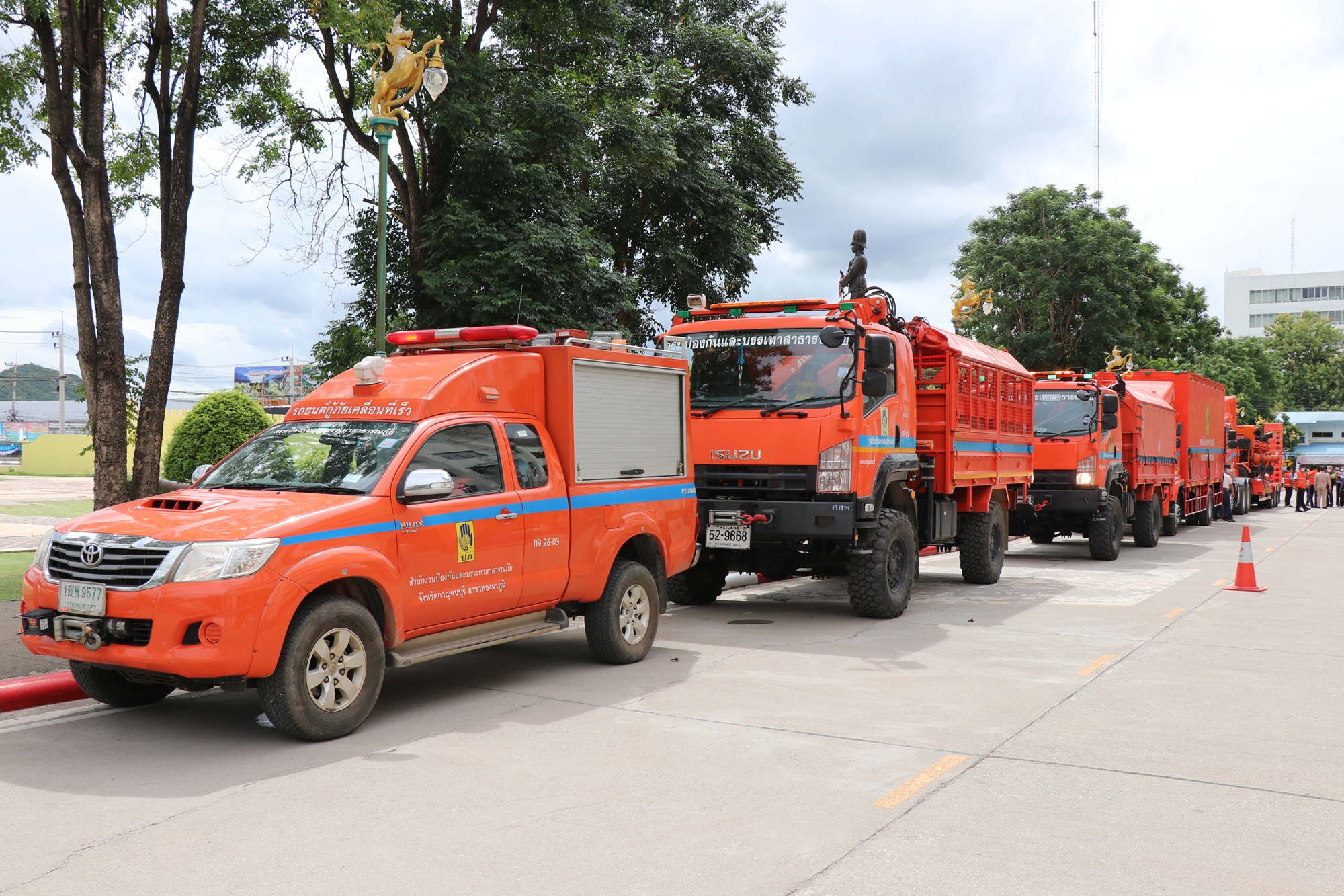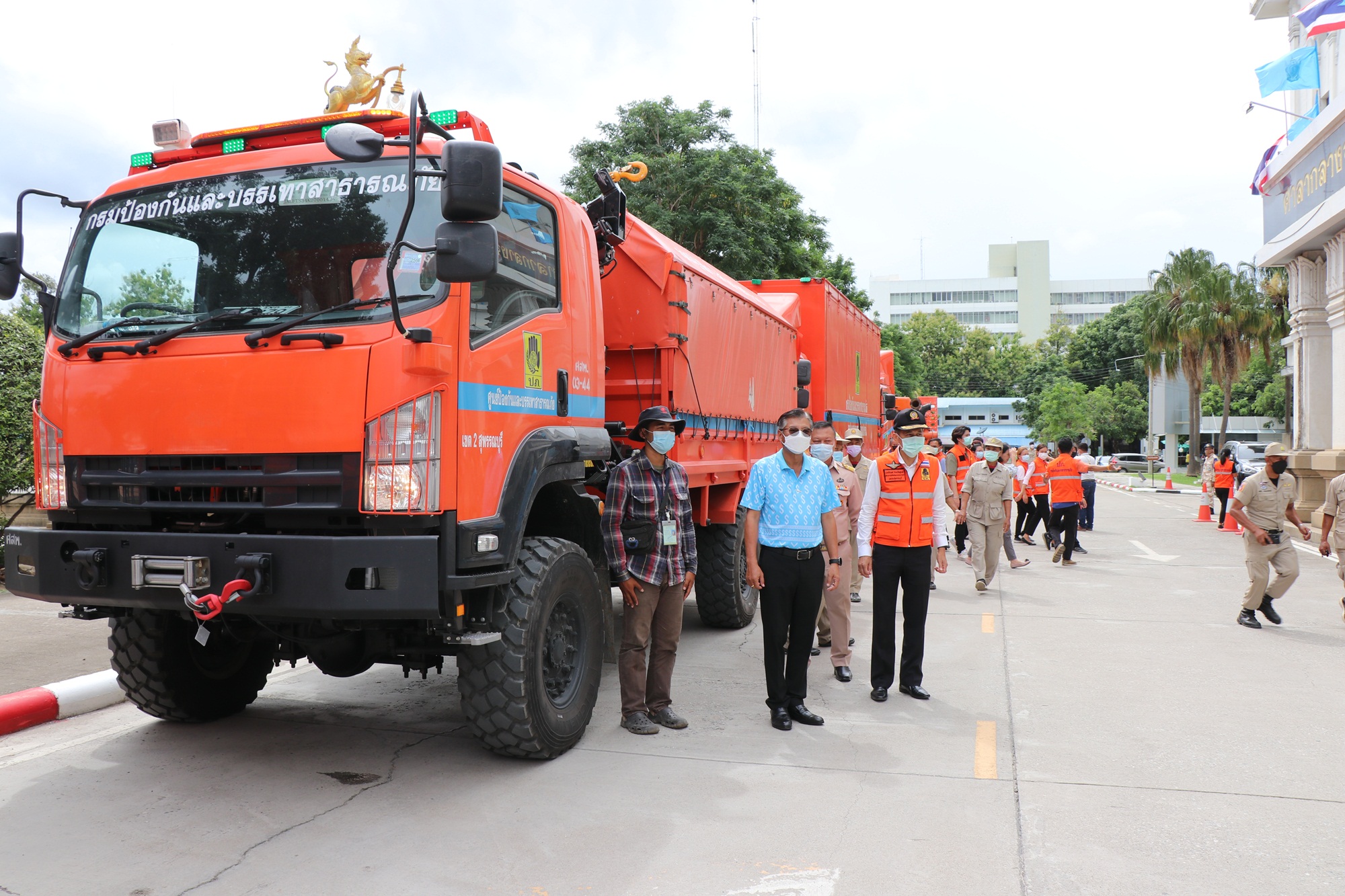 กาญจนบุรี รองผู้ว่าราชการจังหวัดกาญจนบุรีรับมอบเครื่องจักรกลสาธารณภัย เพื่อเตรียมความพร้อมช่วยเหลือประชาชนหากเกิดสาธารณภัยในพื้นที่จังหวัดกาญจนบุรี