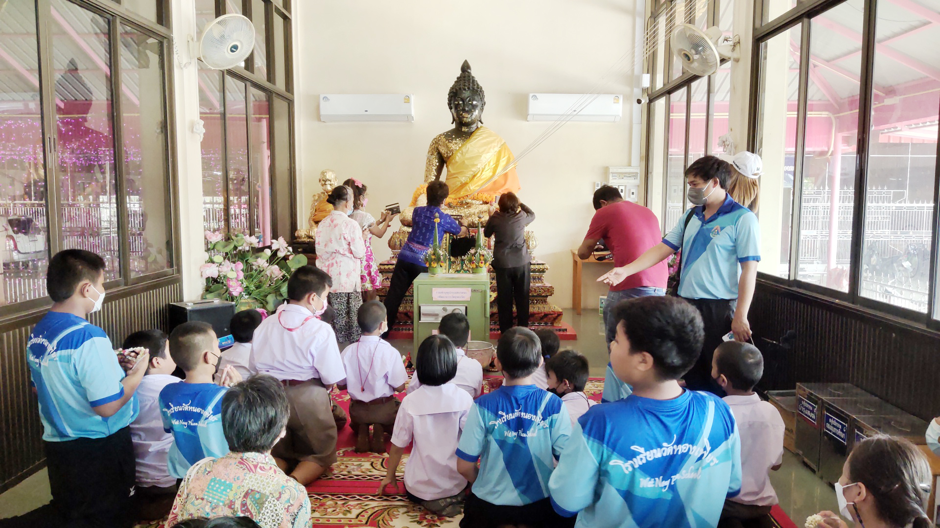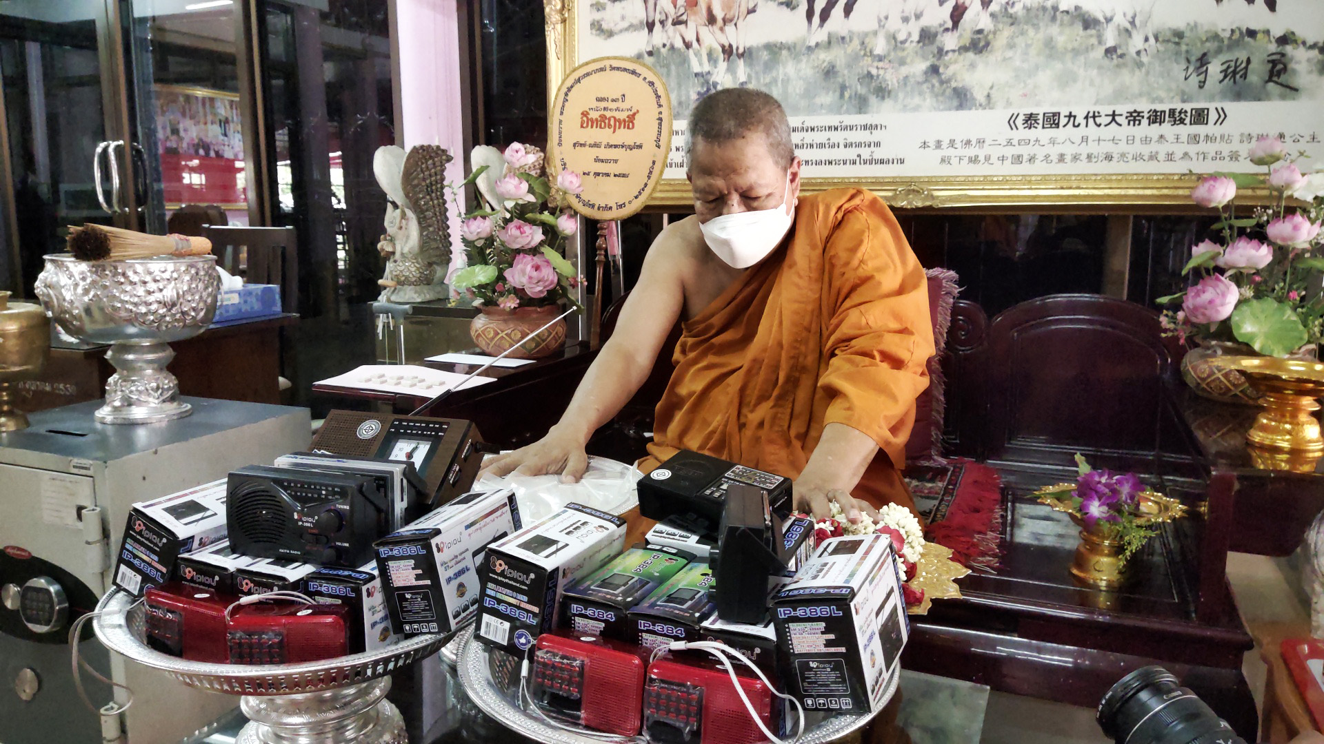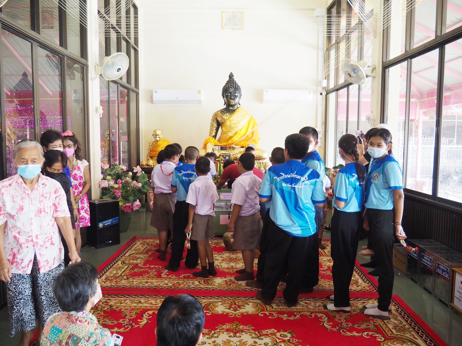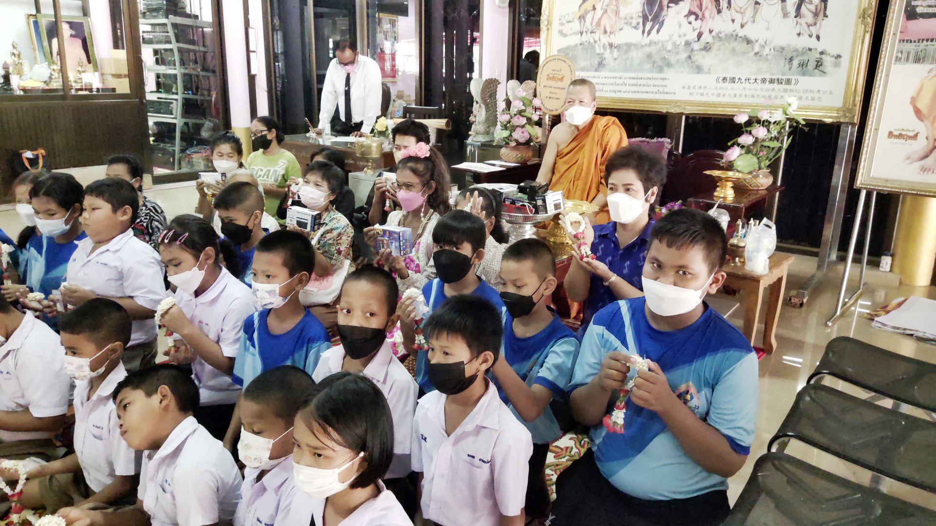 สุพรรณบุรี ไหว้พระขอพรหลวงพ่อดำหลวงพ่อขาวรับพวงมาลัยดอกมะลิรับแจกวัตถุมงคลวันแม่