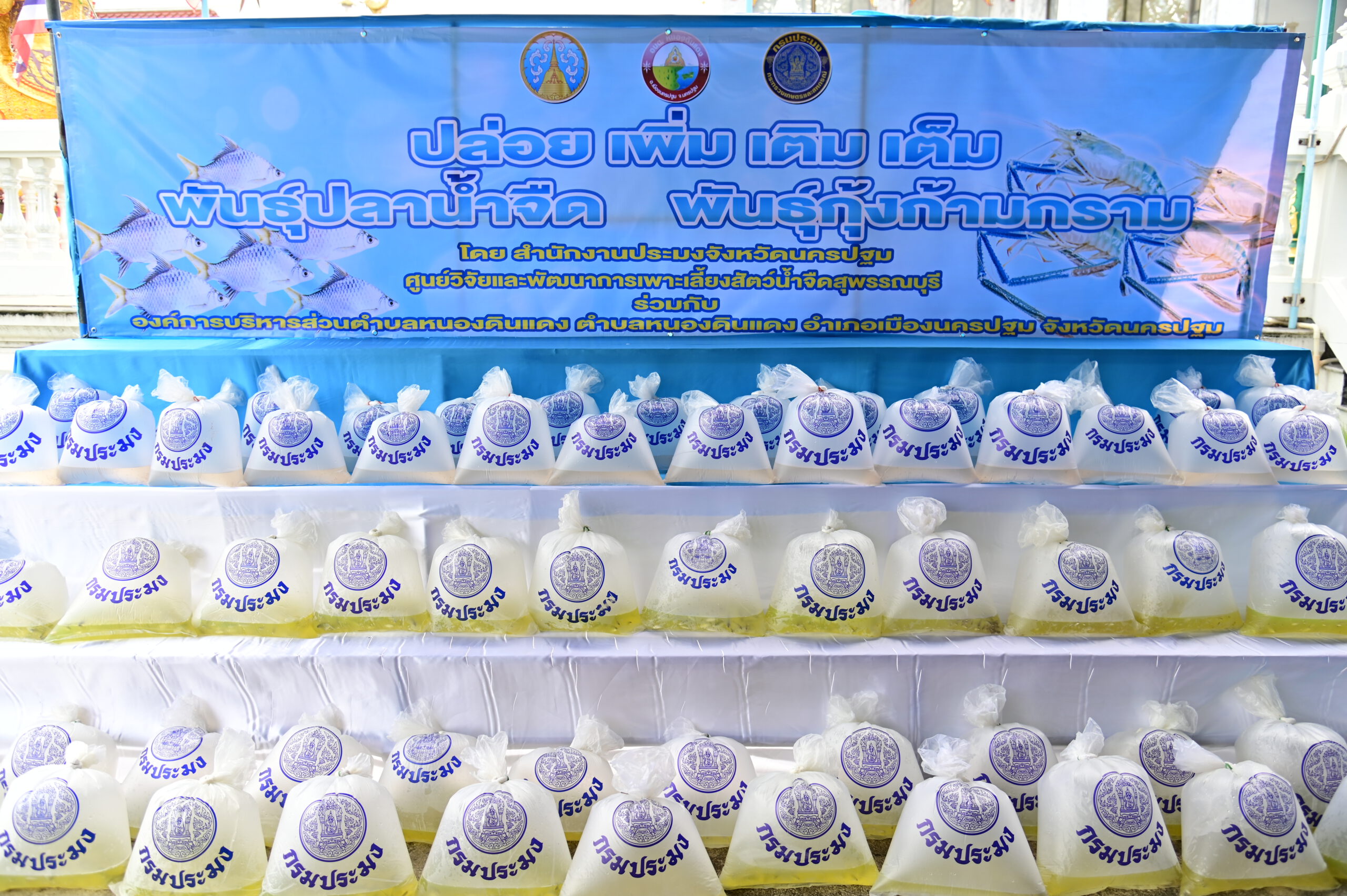 วันที่ 11 สิงหาคม 2565 นายสุรศักดิ์ เจริญศิริโชติ ผู้ว่าราชการจังหวัดนครปฐม เป็นประธานพิธีปล่อยพันธุ์สัตว์น้ำ 600,099 ตัว เฉลิมพระเกียรติสมเด็จพระนางเจ้าสิริกิติ์ พระบรมราชินีนาถ พระบรมราชชนนีพันปีหลวง เนื่องในวันเฉลิมพระชนมพรรษา 90 พรรษา 12 สิงหาคม 2565 ณ บริเวณท่าน้ำวัดหนองดินแดง ตำบลหนองดินแดง อำเภอเมืองนครปฐม โดยมีพระครูหริภูมิรักษ์ เจ้าคณะตำบลสวนป่าน เจ้าอาวาสวัดหนองดินแดง พร้อมด้วย หัวหน้าส่วนราชการ ข้าราชการ เจ้าหน้าที่จากหน่วยงานต่างๆ ตลอดจนผู้นำท้องถิ่น นักเรียน และประชาชนในพื้นที่ เข้าร่วมกิจกรรมในครั้งนี้ เพื่อเฉลิมพระเกียรติและถวายพระราชกุศล แด่ สมเด็จพระนางเจ้าสิริกิติ์ พระบรมราชินีนาถ พระบรมราชชนนีพันปีหลวง อีกทั้งเพื่อให้หน่วยงานภาครัฐ ภาคเอกชน และประชาชนทั่วไปได้มีส่วนร่วมในการปล่อยพันธุ์สัตว์น้ำ ตลอดจนอนุรักษ์ทรัพยากร และเพิ่มพูนปริมาณสัตว์น้ำในแหล่งน้ำ ให้มีความอุดมสมบูรณ์มากขึ้น