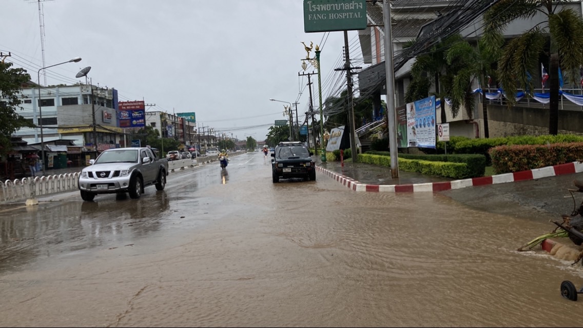 สถานการณ์น้ำป่าเข้าท่วมหลายหมู่บ้านในพื้นที่อำเภอฝาง อำเภอแม่อาย จังหวัดเชียงใหม่ ในเช้าวันนี้น้ำป่าเริ่มทะลักเข้าสู่แม่น้ำสายหลัก น้ำแม่มาว น้ำฝาง น้ำใจ ในพื้นที่อำเภอฝาง และน้ำป่าล้นจากลำห้วยล้นทะลักขึ้นถนนสาย1089 ล้นเข้าท่วมถนน ในพื้นที่อำเภอฝาง นั้นน้ำได้ไหลเข้าท่วมหลายหมู่บ้านซ้ำรอบสอง บ้านสบมาว บ้านนันทาราม ตำบลสันทราย บ้านริมฝาง บ้านสันป่าไหน่ บ้านต้นหนุน บ้านฟอกซ์แลนด์ ตำบลเวียง อำเภอฝาง และน้ำใจ ไหลล้นขึ้นถนนหน้าโรงพยาบาลฝางจนถึงสี่แยกไฟแดงธนาคารออมสิน ทำให้การสัญจรเป็นไปแบบลำบาก