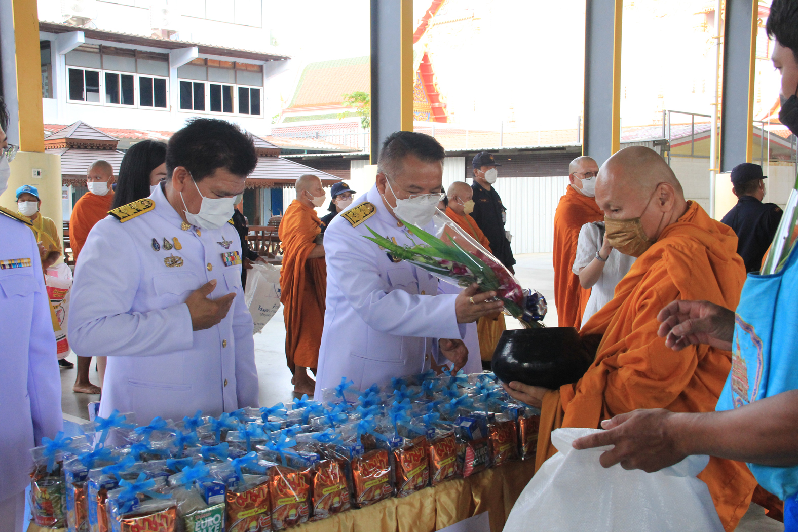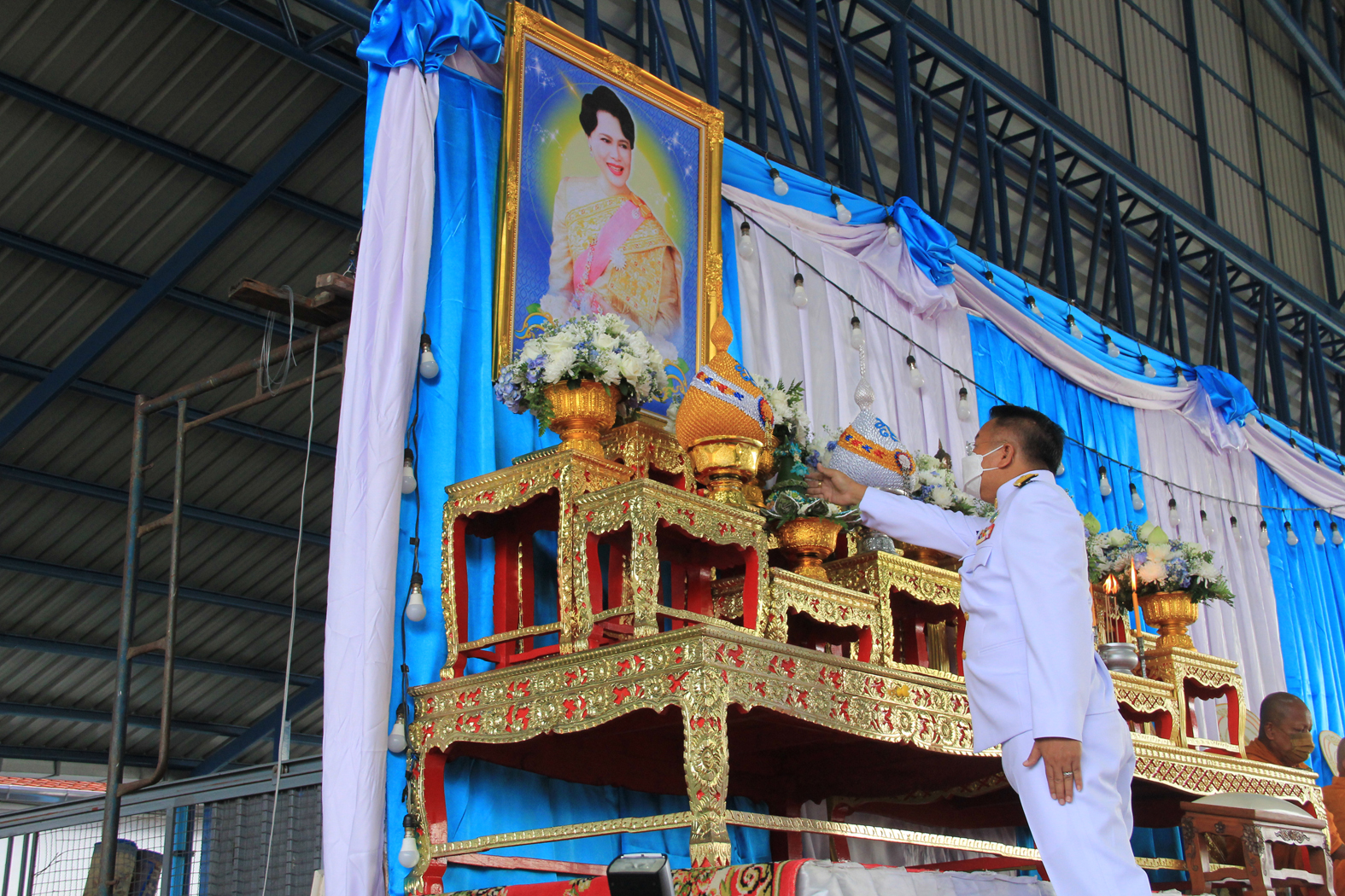 โดยมีพระครูปลัดสุวัฒนศีลคุณ เจ้าอาวาสวัดบางพลีใหญ่กลาง จังหวัดสมุทรปราการ หรือพระครูแจ้ ร่วมเป็นประธานฝ่ายสงฆ์นำพระภิกษุสงฆ์ จำนวน 9 รูปมาทำการเจริญพระพุทธมนตร์ หลังจากนั้น พระครูปลัดสุวัฒนศีลคุณ เจ้าอาวาสวัดบางพลีใหญ่กลาง ได้ขึ้นธรรมาสน์ทำการเทศนา ให้ชาวบางพลีได้ร่วมฟัง หลังจากนั้นได้ร่วมเปิดโรงทานแจกจ่ายราดหน้าและน้ำดื่มให้กับชาวบ้านอำเภอบางพลี เพื่อเป็นการทำความดีถวายเป็นพระราชกุศลเนื่องในวันเฉลิมพระชนมพรรษา สมเด็จพระนางเจ้าสิริกิติ์ พระบรมราชินีนาถ พระบรมราชชนนีพันปีหลวง 12 สิงหาคม 2565
