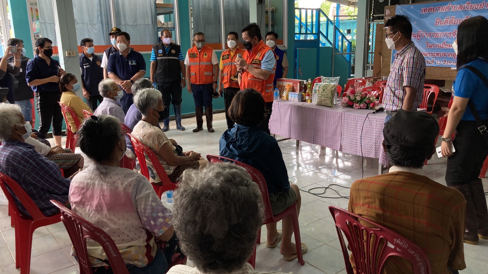 จากสถานการณ์น้ำท่วมหลายพื้นที่ของจังหวัดเชียงใหม่ นายประจญ ปรัชญ์สกุล ผู้ว่าราชการจังหวัดเชียงใหม่ ได้มาตรวจเยี่ยมประชาชนที่ได้รับความเดือดร้อนจากน้ำท่วม และตรวจพื้นที่ฝายที่พังเสียหายจากน้ำป่าในครั้งนี้ โดยมีนายจีรชาติ ซื่อตระกูล นายอำเภอฝาง อำนวยความสะดวก และได้มาเยี่ยมและมอบถุงยังชีพให้กับประชาชนบ้านสันป่าไหน่ หมู่ที่ 9 ตำบลเวียง อำเภอฝาง จังหวัดเชียงใหม่ ได้พบปะกับกำนัน และผู้ใหญ่บ้าน อำเภอฝาง และได้รับรายงานจากผู้จักการประปาภูมิภาคอำเภอฝาง ที่ได้หยุดจ่ายน้ำประปาในช่วงน้ำท่วมสาเหตุเพราะว่าตู้ไฟฟ้าถูกน้ำท่วมเสียหาย แต่เวลานี้ได้จ่ายน้ำได้แล้ว ได้พบนายกเทศมนตรีเทศบาลเวียงฝาง ทราบถึงการเสียหายของผลกระทบจากน้ำท่วมฉับพลันในครั้งนี้ ได้พุคคุยกับประชาชนว่าขอให้ระมัดระวังเรื่องน้ำที่อาจจะมาอีกเพราะยังมีพายุเข้า ให้จัดเตรียมการเอาไว้ทั้งข้าวปลาอาหาร และได้ทำการแจกถุงยังชีพให้กับประชาชนบ้านสันป่าไหน่,บ้านไผ่ล้อม,บ้านริมฝาง หมู่ที่ 9 ตำบลเวียง