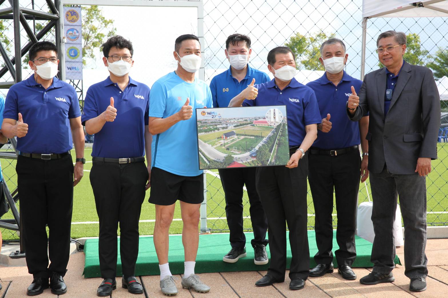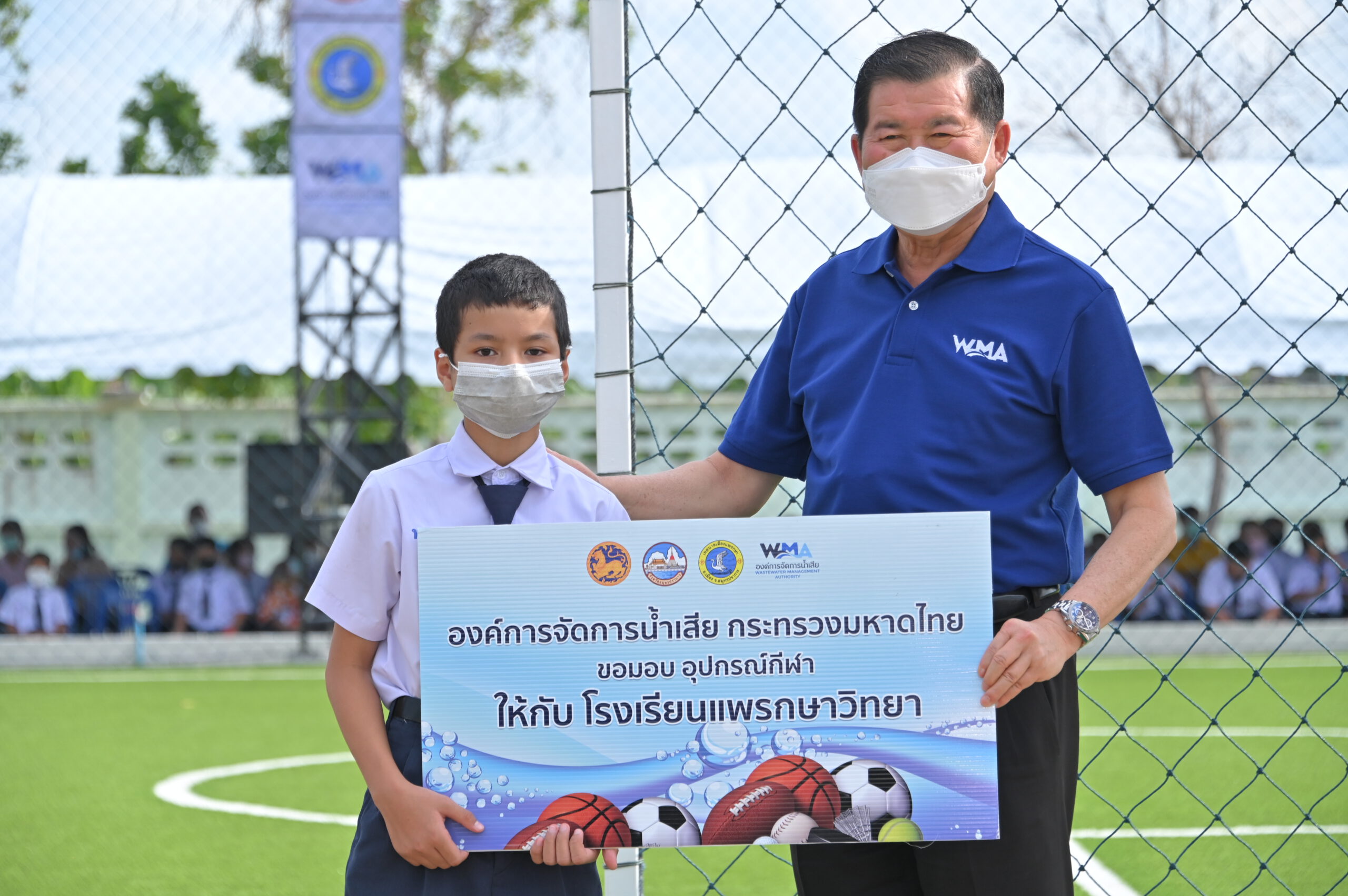 ณ ศูนย์บริหารจัดการคุณภาพน้ำเทศบาลเมืองแพรกษา จังหวัดสมุทรปราการ พร้อมส่งมอบสนามฟุตบอลที่มีระบบบำบัดน้ำเสียอยู่ใต้สนามให้กับเทศบาลเมืองแพรกษา จังหวัดสมุทรปราการ