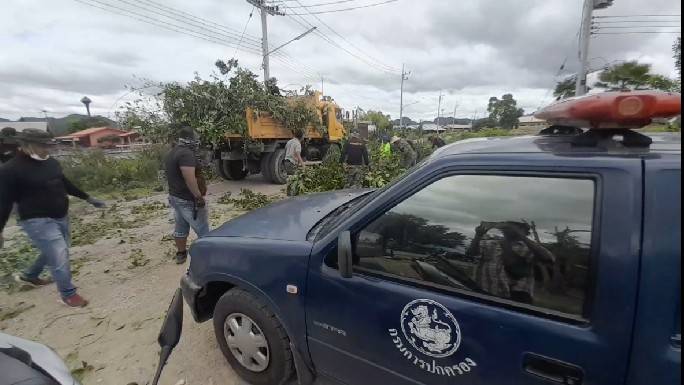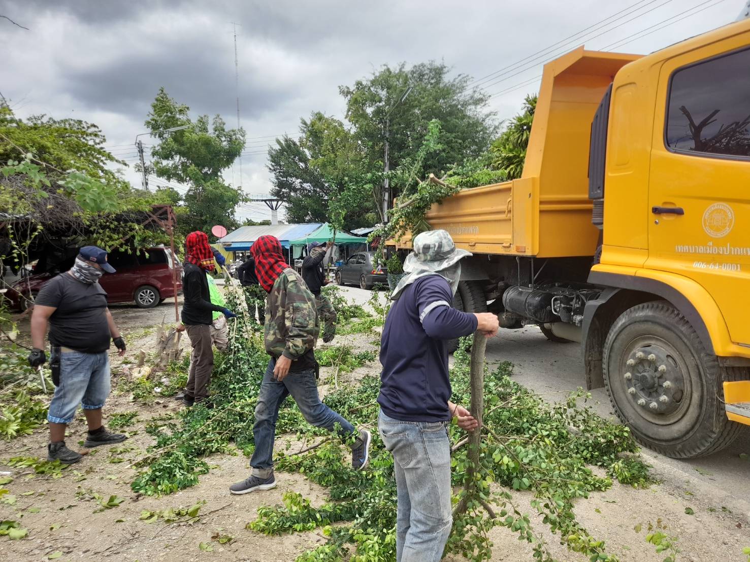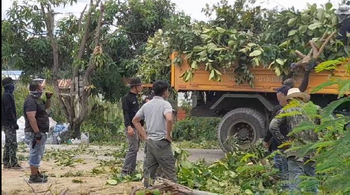 กาญจนบุรี นายอำเภอเมืองนำ กำลัง อส.เมือง ร่วมกับ ทม.ปากแพรกปรับแต่งต้นไม้บดบังภูมิทัศน์พื้นที่บ้าน 60 หลังเกาะรัตนกาญจน์กาญจนบุรี เพื่อรองรับกับจุดชมวิว”Sky Walk ”