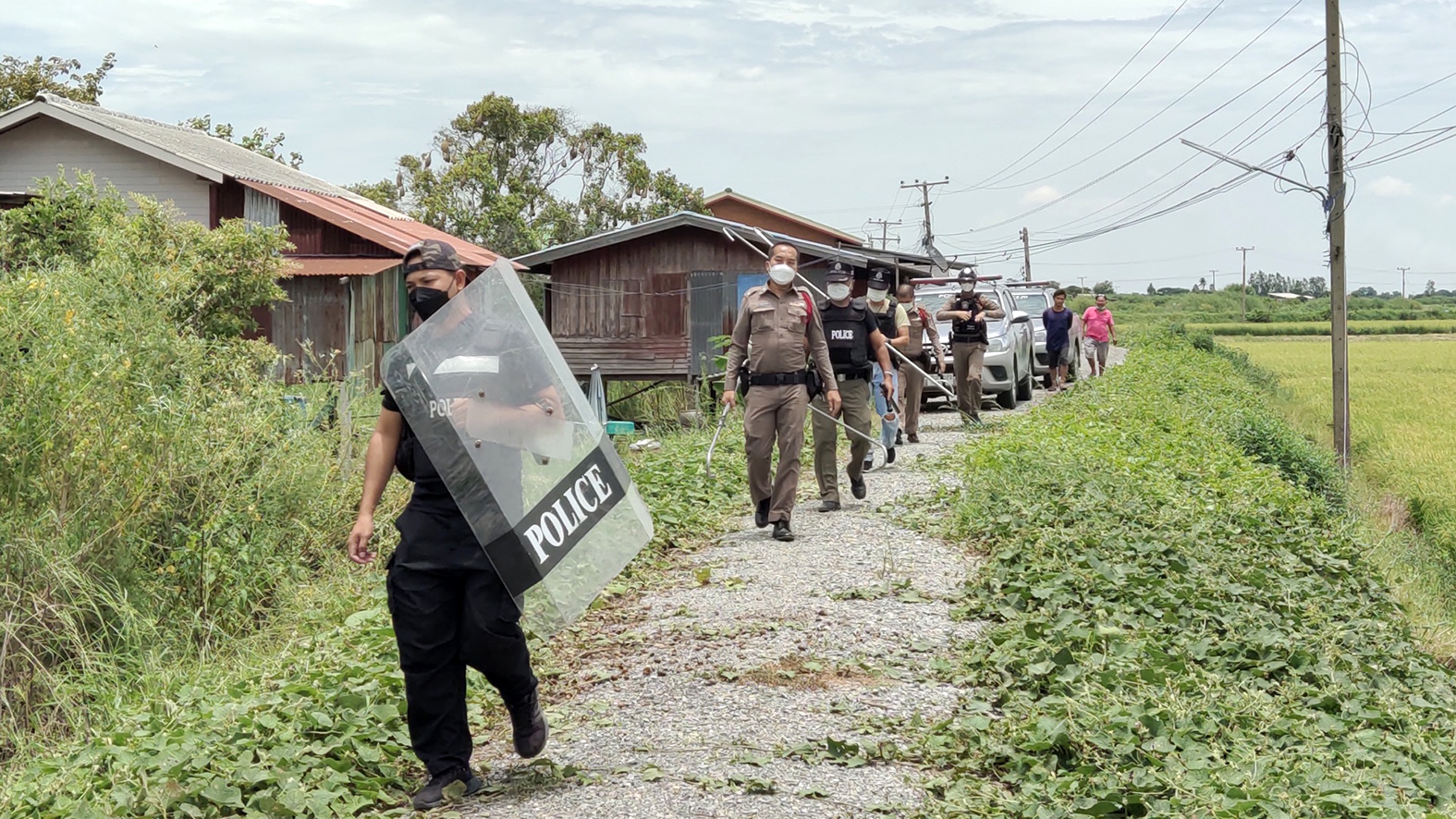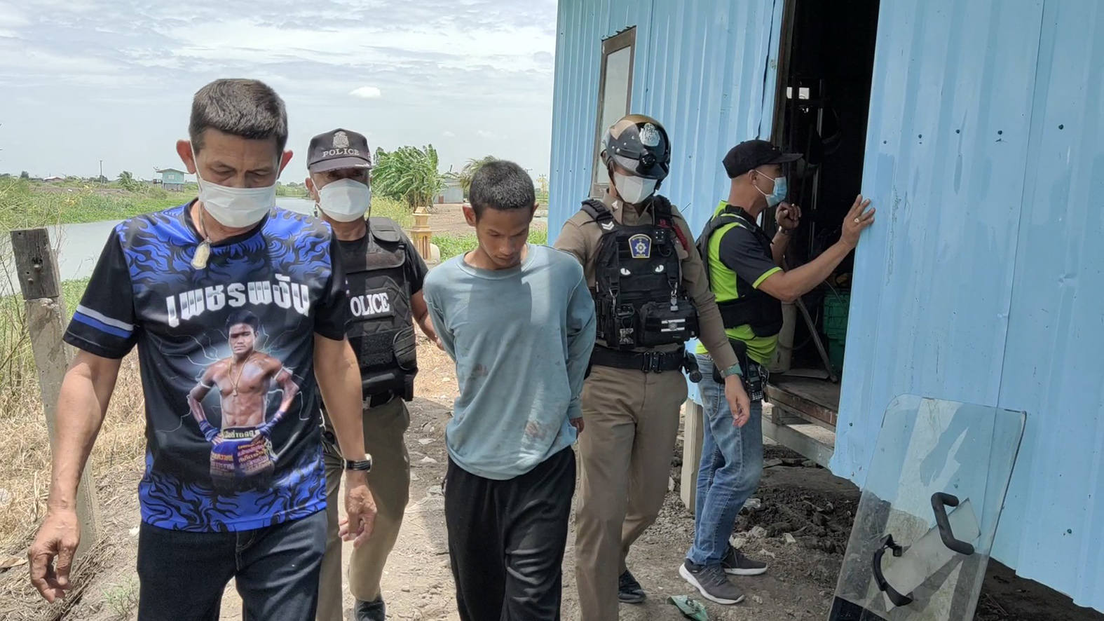 ตำรวจบางปลาม้า เข้าปิดล้อมจับกุมนายเทวทัศน์ บุญประเสริฐ หรือแจ๋ม ทองคุ้ง อายุ 24ปี ที่คลั่งยาเสพติดก่อเหตุใช้มีดกระหน่ำแทงพ่อบังเกิดเกล้า 11 แผลไส้ทะลักหลังก่อเหตุเดินกลับมานอนที่บ้านใกล้กันเหมือนไม่มีอะไรเกิดขึ้นส่วนคนเจ็บกัดฟันขับเรือพาตัวเองไปขอความช่วยเหลือจากญาติให้ช่วยนำส่งโรงพยาบาล อาการโคม่า
