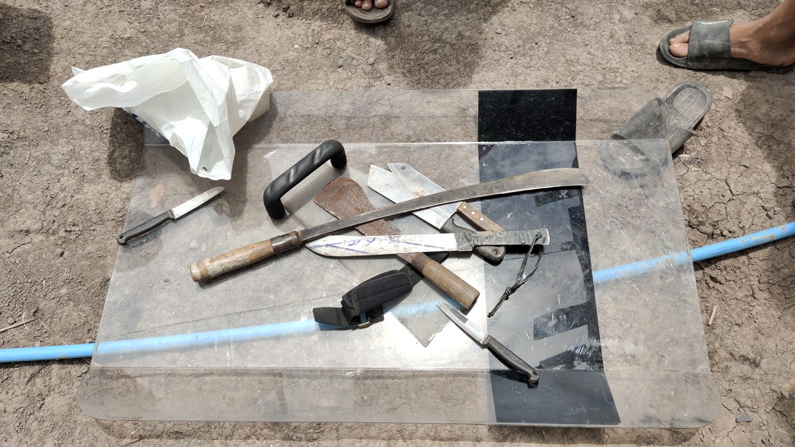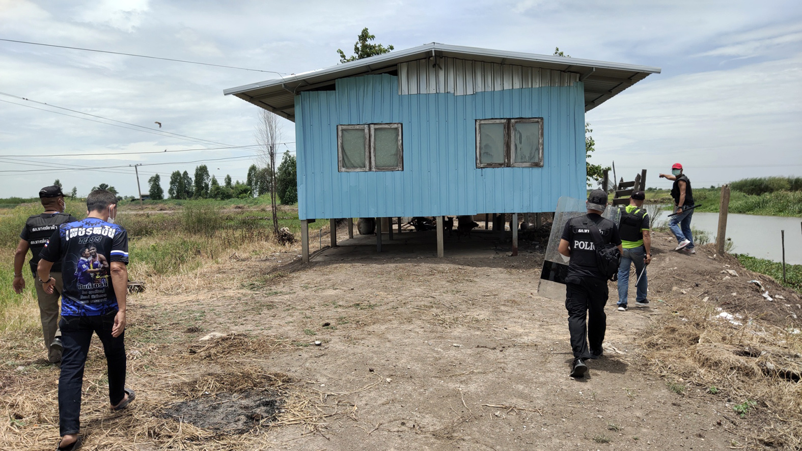 เจ้าหน้าที่จึงนำตัวลงมาตรวจค้นในตัวไม่พบอาวุธและสิ่งของผิดกฎหมาย จากนั้นได้นำตัวไปตรวจสอบที่บ้านอีกหลังหนึ่งซึ่งกันประมาณ 50 เมตรซึ่งเป็นบ้านที่นายอุกร พ่อขางนายเทวทัศน์ อาศัยอยู่ พบที่ห้องครัวมีรอยเลือดหยดเปรอะเปื้อนเต็มทั่วพื้น ตรวจค้นในห้องนอนพบยาบ้า 6 เม็ดอยู่ในกระเป๋าสะพายสำดำวางอยู่ใต้หมอน จากนั้นได้ตรวจค้นในบ้านที่นายเทวทัศน์ นอนพัก พบมีดปลายแหลมยาวประมาณ 1 ฟุตเปื้อนเลือด และยาบ้าอยู่ในซองพลาสติกอีก 3เม็ด ขณะนอนหลับอยู่ในบ้านจึงเก็บไว้เป็นหลักฐาน