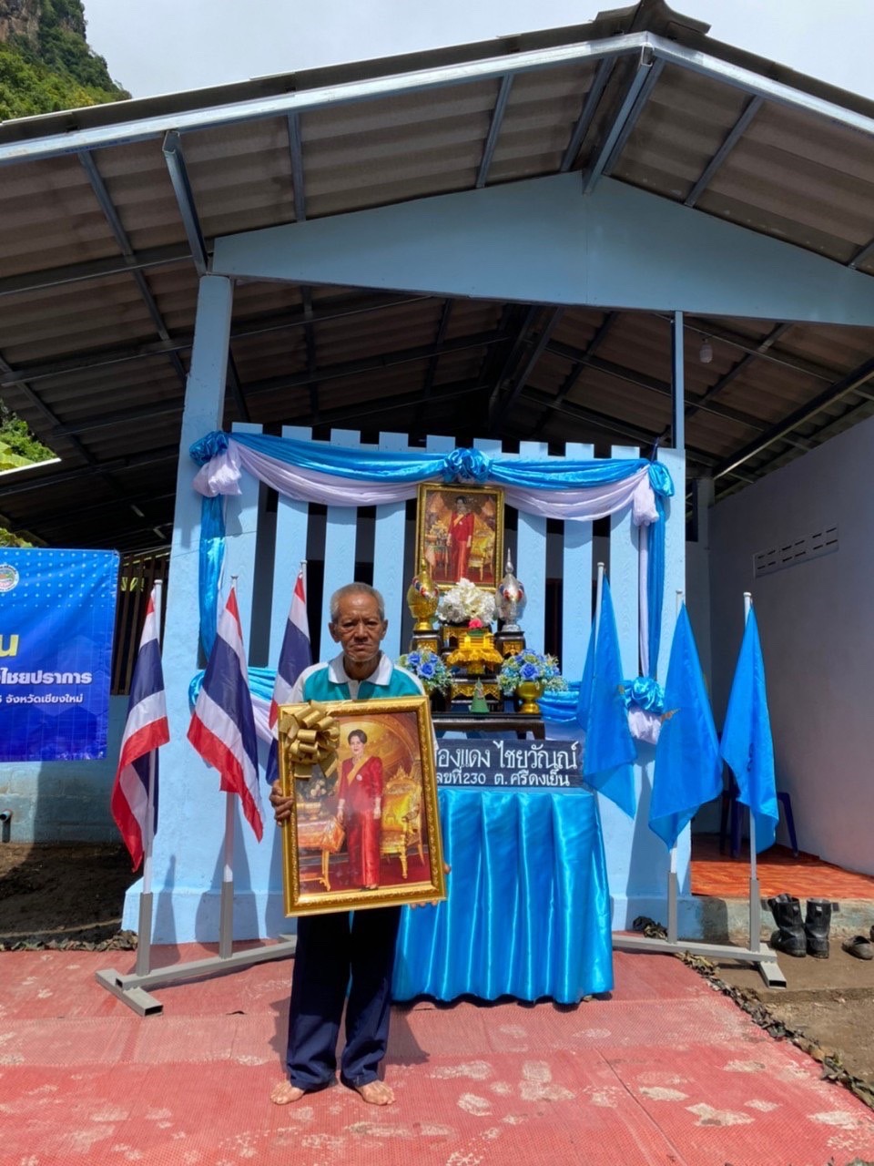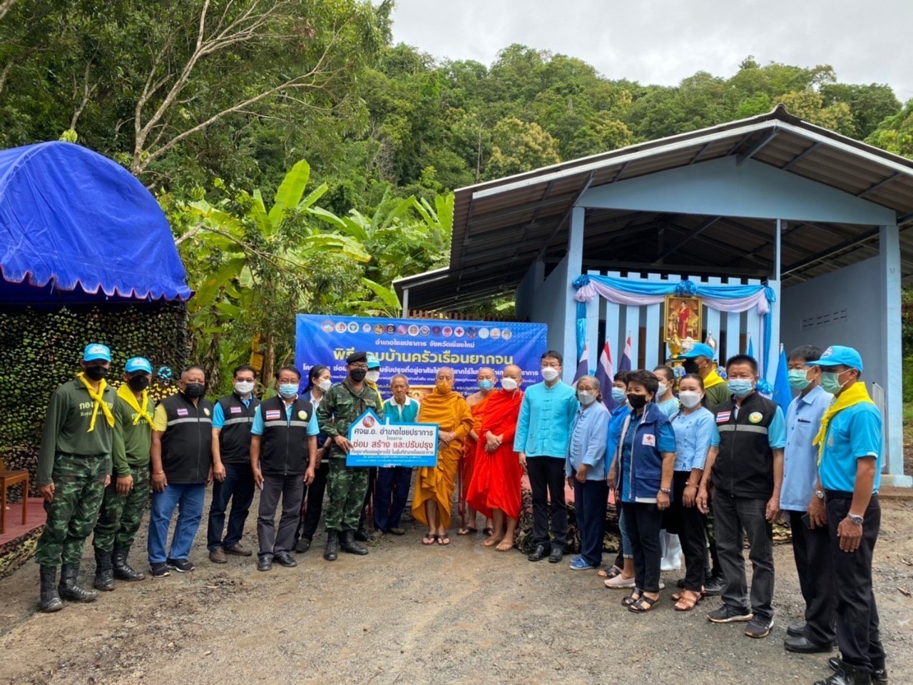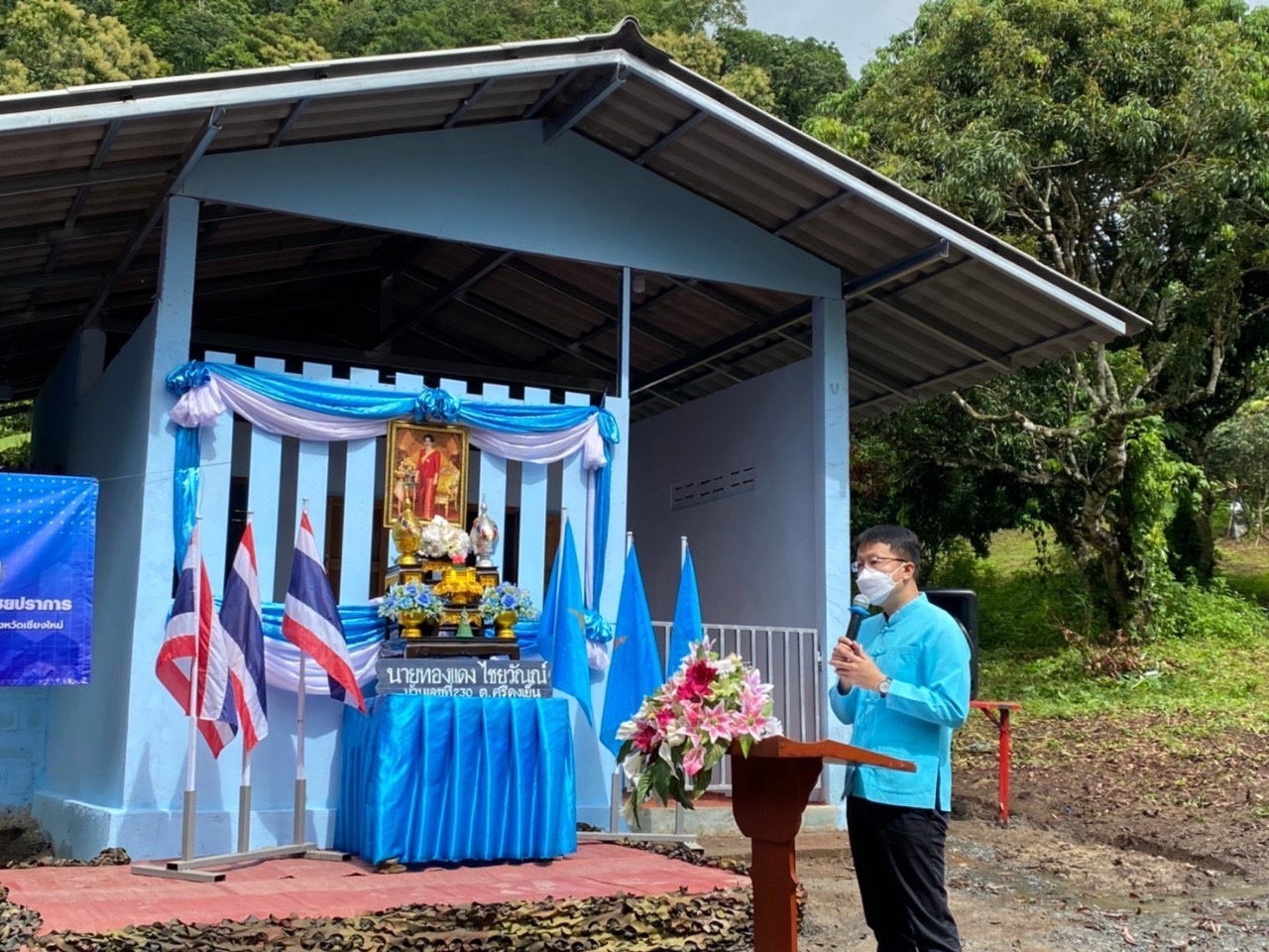 วันที่ 22 สิงหาคม พ.ศ.2565 นายวัชระ เทพกัน นายอำเภอไชยปราการ ประธานคณะกรรมการศูนย์อำนวยการขจัดความยากจนและพัฒนาคนทุกช่วงวัยอย่างยั่งยืน ตามหลักปรัชญาของเศรษฐกิจพอเพียงอำเภอไชยปราการ พร้อมพระครูสถิตธรรมภิรักษ์ เจ้าคณะอำเภอไชยปราการ ร่วมเป็นประธานในพิธีมอบบ้านให้กับผู้ยากไร้ ตามโครงการเฉลิมพระเกียรติสมเด็จพระนางเจ้าสิริกิติ์ พระบรมราชินีนาถ พระบรมราชชนนีพันปีหลวง เนื่องในโอกาสมหามงคลเฉลิมพระชนมพรรษา 90 พรรษา 12 สิงหาคม 2565 กิจกรรม ซ่อม สร้าง และปรับปรุงที่อยู่อาศัยให้แก่ผู้ยากไร้ในพื้นที่อำเภอไชยปราการ ประจำปี พ.ศ. 2565 ครัวเรือนของ นายทองแดง ไชยวัณณ์ พื้นที่บ้านปางมะขามป้อม หมู่ที่ 14 ตำบลศรีดงเย็น อำเภอไชยปราการ จังหวัดเชียงใหม่ โดยมี ท่านพระครูสถิตธรรมาภิรักษ์ เจ้าคณะอำเภอไชยปราการ ตัวแทนคณะสงฆ์อำเภอไชยปราการ นายวัชระ เทพกัน นายอำเภอไชยปราการ นายศรียนต์ จิตรประสงค์ ผู้ใหญ่บ้านบ้านปางมะขามป้อม นางสาวศรีไพร อภิชัย ประธานคณะกรรมการพัฒนาสตรีอำเภอไชยปราการ นายธรรมเกียรติ์ เสนยอง นายกองค์การบริหารส่วนตำบลศรีดงเย็น ร.อ. สันติ คุ้มสายสอาด นายทหารฝ่ายกำลังพลกองบังคับการควบคุมที่ 2 หน่วยเฉพาะกิจกรมทหารม้าที่ 4 ฐานปฏิบัติการบ้านร้องธาร นายวิเศษ ผงนอก ปลัดอำเภอฝ่ายปกครอง และอำนวยความเป็นธรรม ปลัดประจำตำบลศรีดงเย็น นางสาวกิ่งกาญ เครือรอด ปลัดอำเภอฝ่ายความมั่นคง กิ่งกาชาดอำเภอไชยปราการ เจ้าหน้าที่ทหารกองบังคับการควบคุมที่ 2 หน่วยเฉพาะกิจกรมทหารม้าที่ 4 ฐานปฏิบัติการบ้านร้องธาร เจ้าหน้าที่องค์การบริหารส่วนตำบลศรีดงเย็น สำนักงานพัฒนาชุมชนอำเภอไชยปราการ สำนักงานเกษตรอำเภอไชยปราการ คณะกรรมการพัฒนาสตรีอำเภอไชยปราการ อสม.บ้านปางมะขามป้อม และประชาชนบ้านปางมะขามป้อม เข้าร่วมพิธีมอบบ้าน บ้านของนายทองแดง ไชยวัณณ์ หมู่ที่ 14 ตำบลศรีดงเย็น อำเภอไชยปราการ จังหวัดเชียงใหม่ ได้ร่วมในการก่อสร้างบ้านจนแล้วเสร็จ