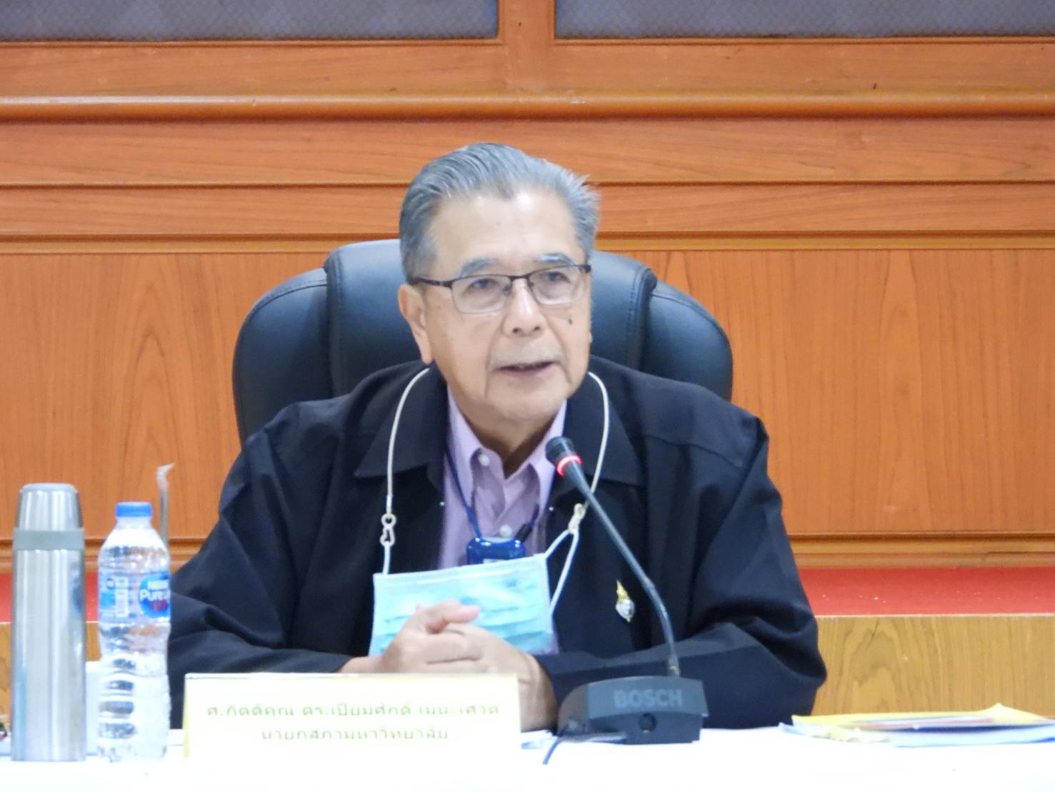 ศาสตราจารย์ กิตติคุณ ดร.เปี่ยมศักดิ์ เมนะเศวต นายกสภา มหาวิทยาลัยเทคโนโลยีราชมงคลศรีวิชัย และกรรมการสภามหาวิทยาลัยเทคโนโลยีราชมงคลศรีวิชัย พร้อมด้วย ศาสตราจารย์ ดร.สุวัจน์ ธัญรส อธิการบดีมหาวิทยาลัยเทคโนโลยีราชมงคลศรีวิชัย และคณะผู้บริหาร เข้าร่วมประชุมโครงการสัมมนาระดมความคิดเห็นเชิงนโยบาย (Retreat) ระหว่างกรรมการสภามหาวิทยาลัย และผู้บริหารมหาวิทยาลัยเทคโนโลยีราชมงคลศรีวิชัย ประจำปี 2565 ภายใต้หัวข้อ“ ทิศทางการพัฒนาขับเคลื่อนมหาวิทยาลัยฯ สู่ระบบการศึกษาในอนาคต” ณ อาคารหอประชุมวิธานสันติ มหาวิทยาลัยเทคโนโลยีราชมงคลศรีวิชัย วิทยาเขตนครศรีธรรมราช (ไสใหญ่) การพัฒนามหาวิทยาลัยเทคโนโลยีราชมงคลศรีวิชัย ระยะยาว 20 ปี (พ.ศ. 2561 – 2580) เพื่อใช้เป็นกรอบและแนวทางการพัฒนามหาวิทยาลัยฯ ในระยะยาว ภายใต้ความเชื่อมโยงระหว่างแผนและนโยบาย ฉบับต่าง ๆ ในระดับชาติ อาทิ ยุทธศาสตร์ชาติ 20 ปี (พ.ศ. 2561 – 2580) แผนแม่บทภายใต้ยุทธศาสตร์ชาติ แผนการปฏิรูปประเทศ แผนพัฒนาเศรษฐกิจและสังคมแห่งชาติ นโยบาย สำคัญของรัฐบาล และแผนด้านอื่น ๆ ที่เกี่ยวข้อง โดยในปัจจุบันภายใต้อิทธิพลความเป็นพลวัตของโลกในศตวรรษที่ 21 และการเปิดเสรีด้านการศึกษา สถาบันอุดมศึกษาหรือมหาวิทยาลัยทั่วโลก รวมถึงสถาบันอุดมศึกษาในประเทศไทยต้องพัฒนาและปรับกลยุทธ์ เพื่อรองรับสภาพการแข่งขันด้านการศึกษาที่รุนแรงยิ่งขึ้น สถาบันอุดมศึกษาต่างๆพยายามพัฒนาและเพิ่มศักยภาพของตนเองให้สามารถแข่งขันได้