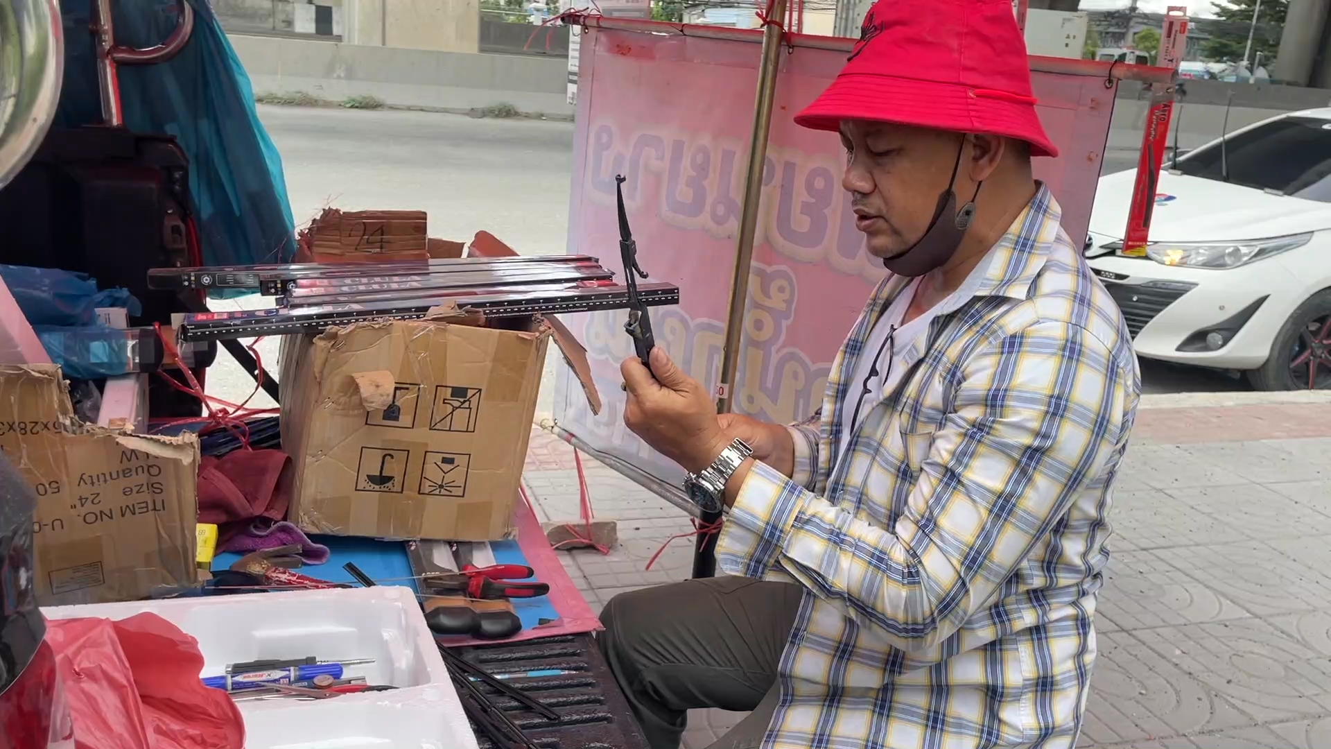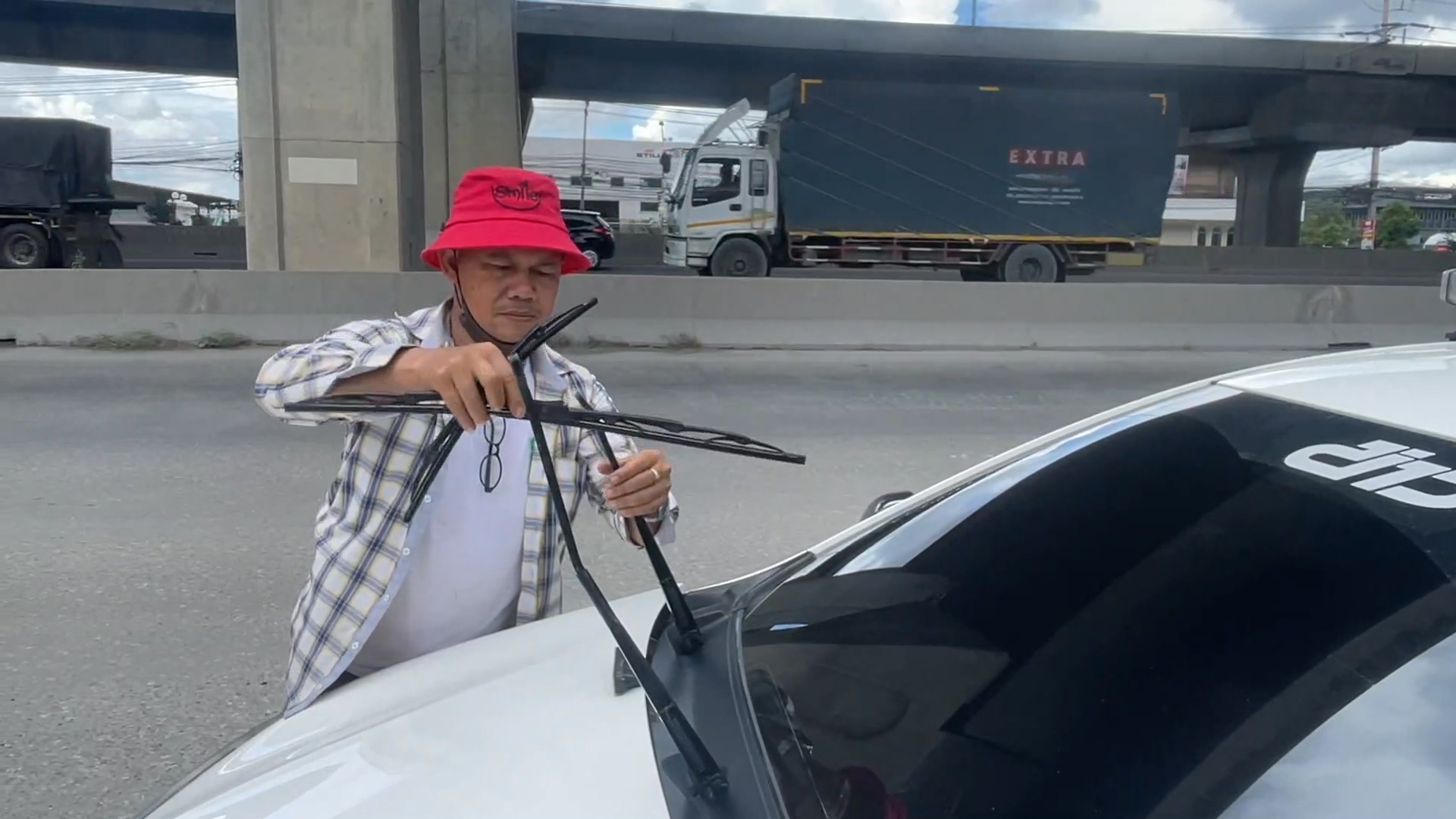 สมุทรปราการ ตร.บางพลีสู้ชีวิตเปิดร้านริมทางรับเปลี่ยนยางปัดน้ำฝนสร้างรายได้เสริมหลังออกเวร