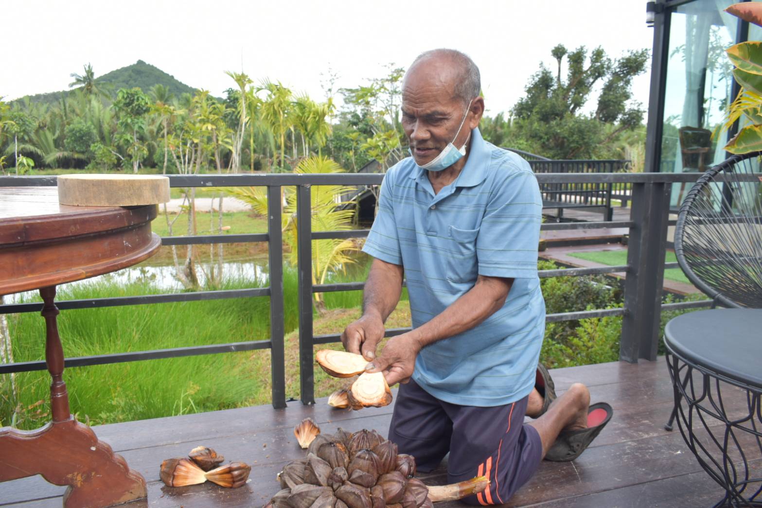 รวมทั้งผลิตภัณฑ์จากป่าจาก เช่น น้ำตาลจากและเสวียนหม้อ เพื่อให้ชาวบ้านมีรายได้อย่างต่อเนื่อง โดยลูกจากที่ตัดได้จะต้องมีอายุ 4 เดือน เนื้อจะสุกกำลังพอดี สามารถนำมาทำกาแฟลูกจาก โดยใช้น้ำตาลจากแทนน้ำตาลทราย และมีเครื่องดื่มอื่น ๆ เช่น โกโก้ อเมริกาโน่ ชาเขียว ชาเย็น ลูกจากนมสดปั่น ขนมจาก เค้กลูกจาก ลูกจากลอยแก้วและอื่น ๆ ให้ลูกค้าได้ลิ้มรสในราคาหลักสิบ แต่วิวหลักล้าน ซึ่งลูกค้าทุกโต๊ะที่มานั่งรับประทานอาหารที่ร้าน จะต้องได้กินลูกจากสดจากต้นราดด้วยน้ำตาลจากฟรี เพื่อเป็นการส่งเสริมการขายและเพิ่มมูลค่าของลูกจาก พืชพื้นถิ่นให้เป็นที่รู้จักของคนทั่วไป โดยเฉพาะเยาวชนคนรุ่นใหม่ ซึ่งในอนาคตจะมีการต่อยอดนำลูกจากไปอบแห้ง ทำลูกจาก 3 รส หรือนำไปใส่แกงส้มแทนยอดมะพร้าว แกงกะทิลูกจาก ผัดผงกะหรี่ปูใส่ลูกจากและอื่น ๆ เพื่อช่วยผลักดันให้ลูกจากกลายเป็นอาหารขึ้นชื่อของอำเภอกันตัง จ.ตรัง ซึ่งถ้าใครมากันตังไม่ได้กินลูกจากถือว่ามาไม่ถึงกันตัง เนื่องจากที่อำเภอกันตัง ถือว่ามีชาวบ้านทำน้ำตาลจากและใช้ประโยชน์จากป่าจากมากที่สุดในจ.ตรัง อีกทั้งยังมีพื้นที่ป่าจากหลงเหลืออยู่มากที่สุดด้วย โดยเฉพาะที่ตำบลย่านซื่อ ซึ่งได้ขึ้นชื่อว่าเป็นแหล่งที่มีป่าจากมากที่สุดในจังหวัด ซึ่งปัจจุบันมีการปลูกป่าจากเพิ่มขึ้น เพื่อทดแทนป่าจากตามธรรมชาติที่มีอยู่เดิม