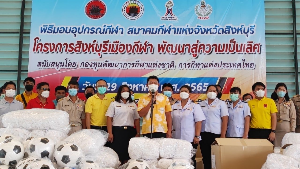 วันที่ ๒๙ สิงหาคม ๒๕๖๕ เวลา ๑๔.๐๐ น นายโชติวุฒิ ธนาคมานุสรณ์ สมาชิกสภาผู้แทนราษฎรจังหวัดสิงห์บุรีเป็นประธานพิธีเปิดกิจกรรมมอบอุปกรณ์กีฬาให้กับโรงเรียนต่างๆในเขตพื้นที่จังหวัดสิงห์บุรีโดยมีนายประจบ จันทร์ภู่ นายกสมาคมกีฬาแห่งจังหวัดสิงห์บุรีเป็นประธานกล่าวรายงาน พร้อมคณะการกีฬาแห่งประเทศไทยจังหวัดสิงห์บุรี นางสาววิภารัตน์ บัญญัติ ผู้อำนวยการ สำนักงานการกีฬาแห่งประเทศไทยจังหวัดสิงห์บุรี และผู้บริหารสมาคมกีฬาแห่งจังหวัดสิงห์บุรี กล่าววัตถุประสงค์ การมอบอุปกรณ์กีฬาเพื่อส่งเสริม สนับสนุน พัฒนาให้เยาวชน ประชาชน ในพื้นที่ได้มีอุปกรณ์กีฬาที่มีมาตรฐาน มีคุณภาพและปลอดภัยในการเล่นกีฬา ซึ่งได้รับการสนับสนุนงบประมาณจากกองทุนพัฒนาการกีฬาแห่งชาติ เพื่อจัดซื้ออุปกรณ์กีฬามอบให้กับโรงเรียน ศูนย์ฝึกนักกีฬา ตลอดจนชมรมกีฬาและองค์กรปกครองส่วน-ท้องถิ่น ที่มีความต้องการอุปกรณ์กีฬาโดยได้รับงบประมาณจากกองทุนพัฒนาการกีฬาแห่งชาติ จำนวน๑,๙๙๗,๙๔๐ บาท (หนึ่งล้านเก้าแสนเก้าหมื่นเจ็ดพันเก้าร้อยสี่สิบบาทถ้วน)