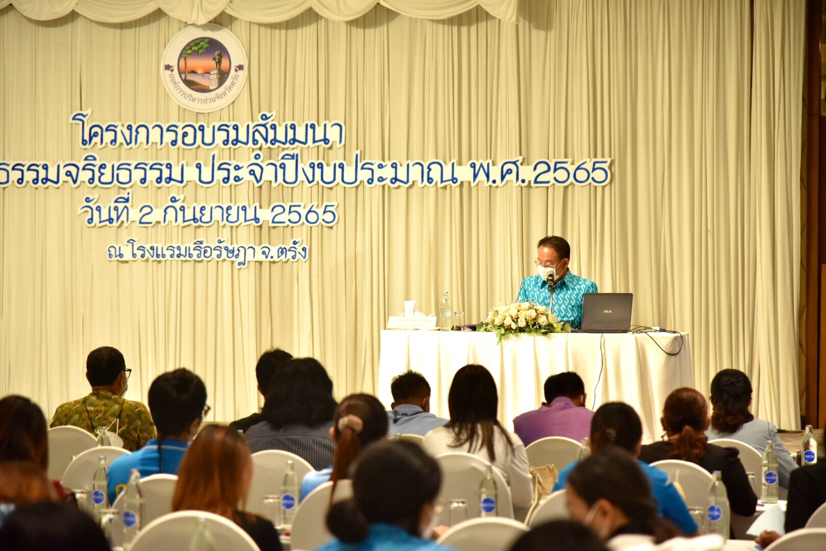 อบจ.ตรัง จัดโครงการอบรมสัมมนามาตรฐานคุณธรรม จริยธรรม ประจำปีงบประมาณ พ.ศ. 2565