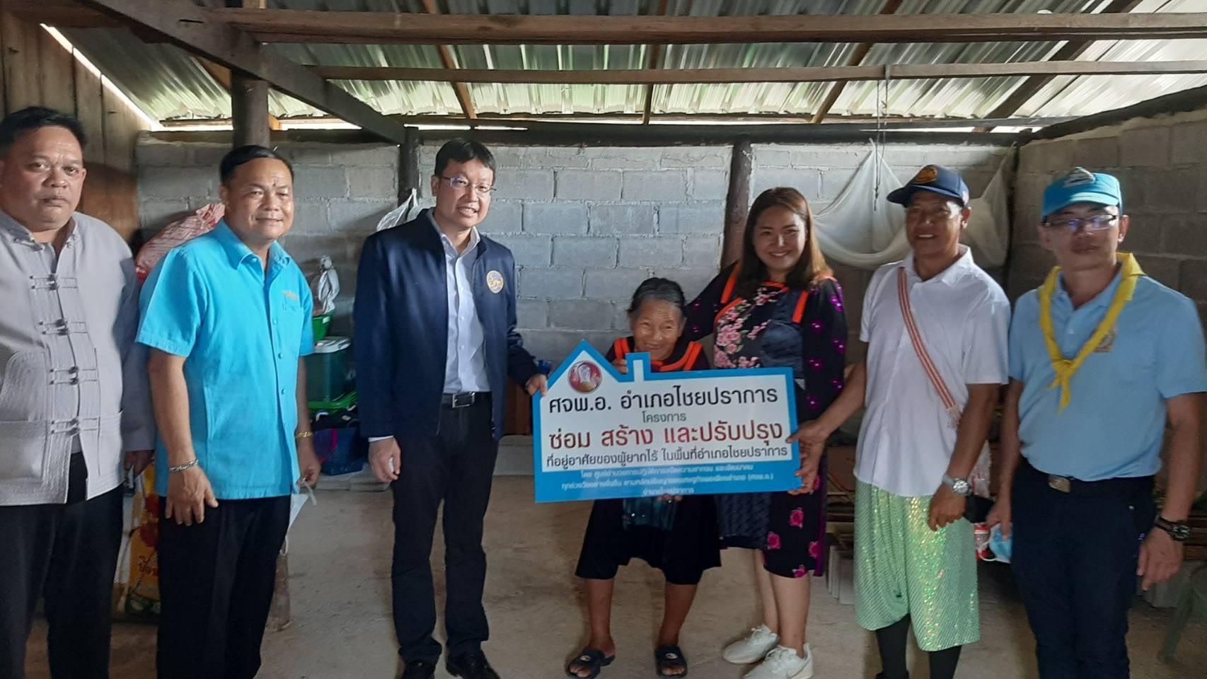 ที่ได้ร่วมในการจัดหาอุปกรณ์สิ่งของในการก่อสร้างให้ นางอะซือมะ แสนย้าง บ้านเลขที่ 96 หมู่ที่ 7 ต.แม่ทะลบ อ.ไชยปราการ จ.เชียงใหม่ ซึ่งเป็นผู้ยากไร้ไม่มีที่อยู่อาศัยเป็นของตนเอง สุขภาพร่างกายไม่แข็งแรง เดินไม่สะดวก และประกอบอาชีพทอผ้าหาเลี้ยงตัวเอง