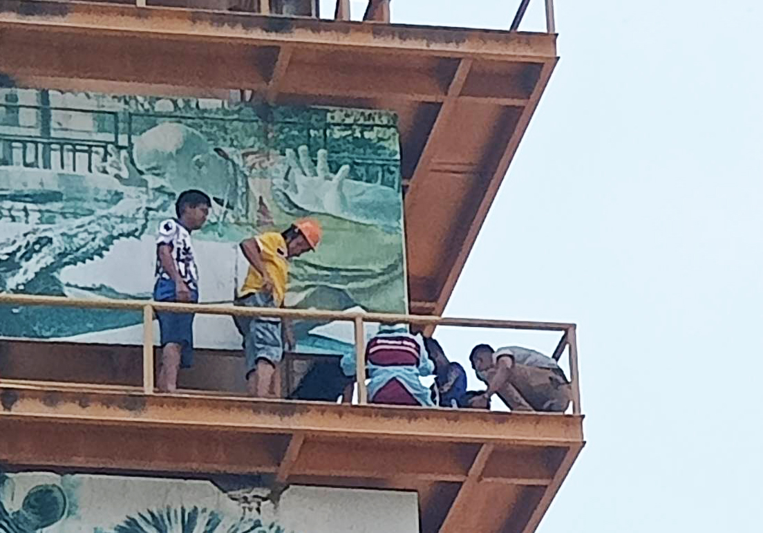 สุพรรณบุรี นาทีชีวิตกู้ภัยช่วยคนงานถูกแตนต่อยขณะซ่อมป้ายบึงฉวากสูงเกือบ50เมตร