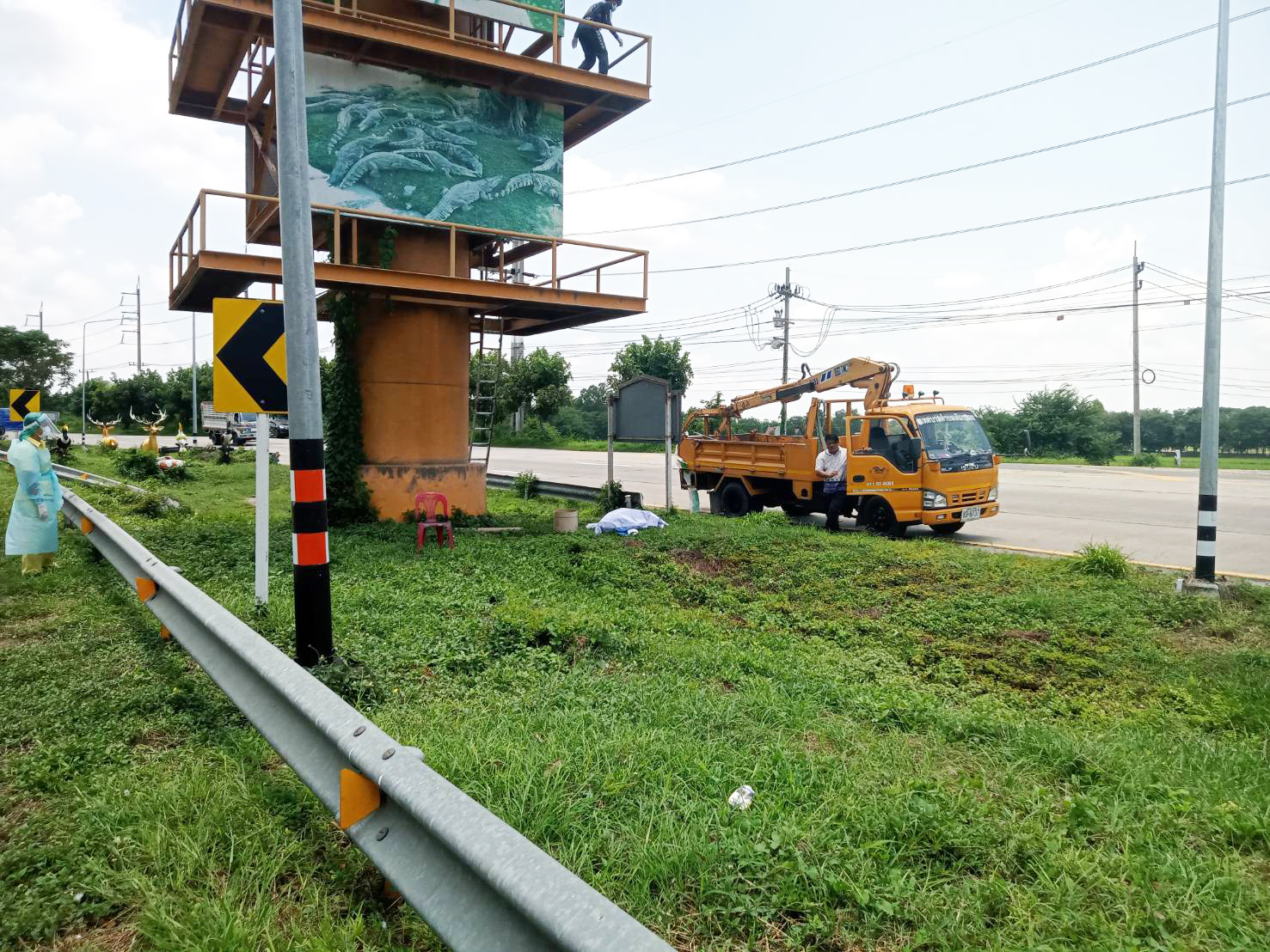 จากการสอบถามเบื้องต้นทราบว่าคนเจ็บชื่อนายนิรันดร สรรเสริญสุข อายุ 27 ปีเป็นคนงานของผู้รับเหมาแห่งหนึ่ง ก่อนเกิดเหตุได้มาทำงานซ่อมบำรุงเปลี่ยนแผ่นป้ายต่างๆของ ป้ายโฆษณาประชาสัมพันธ์บึงฉวากซึ่งตั้งอยู่บริเวณร่องกลางถนนก่อนถึงทางเข้าบึงฉวาก โดยนายนิรันดร ได้ปีนขึ้นไปที่ชั้น 5 ของป้ายซึ่งอยู่สูงจากพื้นดินประมาณ 50 เมตรขณะกำลังทำการรื้อป้ายเก่าที่มีสภาพซีดทรุดโทรม ออกเพื่อน้ำป้ายใหม่ขึ้นไปเปลี่ยนโดยไม่ทันระวังจู่ๆ ได้มีฝูงแตนนับ 10 ตัวบินรุมเข้ามาต่อยตามใบหน้าและลำตัว นายนิรันดร ได้พยายามวิ่งหนีจากชั้น 5 ซึ่งเป็นชั้นสูงสุดลงที่ชั้น 4 เมื่อมาถึงชั้น 4 นายนิรันดร ได้ล้มลงกับพื้นมีอาการแน่นหน้าอกหายใจไม่สะดวกเพื่อนร่วมงานจึงรีบโทรศัพท์แจ้งหน่วยภัยมาช่วยนำส่งโรงพยาบาลและสามารถช่วยชีวิตไว้ได้อย่างหวุดหวิด เนื่องจากนายนิรันดร มีอาการแพ้พิษของแตน ถ้าหน่วยกู้ภัยมาช้ากว่านี้นายนิรันดร อาจเสียชีวิตได้