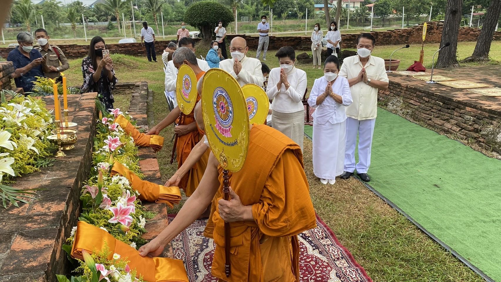 นายศุภวัฒน์ เทียนถาวร นายกองค์การบริหารส่วนจังหวัดสิงห์บุรี นางสาววีรวรรณ จันทนเสวี หัวหน้าสำนักงานจังหวัดสิงห์บุรี นายกู้เกียรติ นิ่มเนียม ท้องถิ่นจังหวัดสิงห์บุรี นายประสิทธิ์ พุ่มไม้ชัยพฤกษ์ วัฒนธรรมจังหวัดสิงห์บุรี นายวัชรินทร์ คุ่ยศิริ ผู้อำนวยการสำนักงานพระพุทธศาสนาจังหวัดสิงห์บุรี นางสาวนงเยาว์ เทพศิริ หัวหน้าสำนักงานป้องกันและบรรเทาสาธารณภัยจังหวัดสิงห์บุรี นางสาวอนุชิดา อ้วนสกุล ท่องเที่ยวและกีฬาจังหวัดสิงห์บุรี หัวหน้าส่วนราชการ ข้าราชการ ประชาชนในท้องที่และพุทธศาสนิกชาวจังหวัดสิงห์บุรี ร่วมพิธี