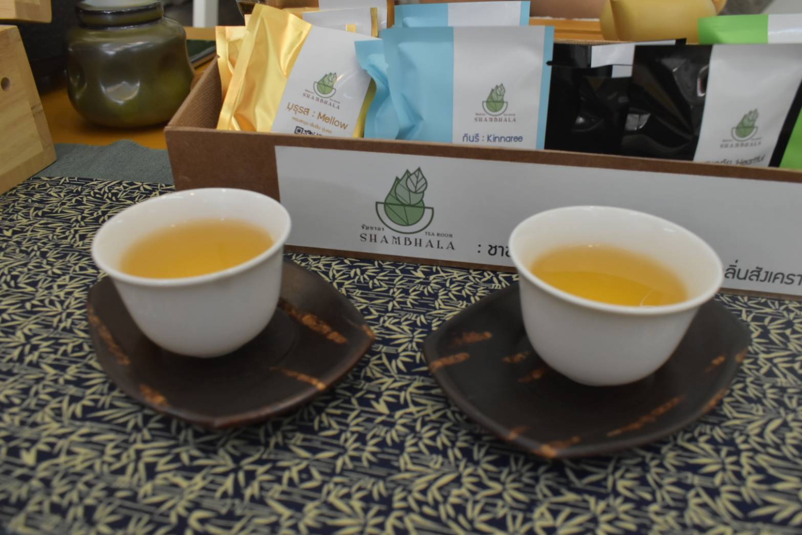 มีน.ส.ไผ่แก้ว ไกรพิทยากร และน.ส.ลฎาภา กิตติธรโภคิน ได้ร่วมกันเปิดร้านมาได้ประมาณ 5 ปีแล้ว โดยลักษณะของใบชาอัสสัมเวลาแห้งจะเป็นสีดำอมแดง และบางครั้งมักจะมีดอกตูมสีทองแซมมาด้วย เมื่อนำไปแช่น้ำ ใบชาจะกลายเป็นสีแดงหรือสีน้ำตาลเข้ม ที่ร้านมีทั้งหมด 17 สูตร นอกจากนี้ยังมีคาเฟ่เซ็ตมีชา 5 รสชาติ บรรจุในซองสวยงาม พร้อมทั้งมี คิวอาร์โค้ดลูกค้าสามารถสแกนเพื่อดูรายละเอียดของชา รวมถึงสรรพคุณโดยจะวางขายตามคาเฟ่ทั่วไปในจังหวัดตรัง ใบชาทั้งหมดทางร้านปลูกเองจากฟาร์มชัมบาลา พร้อมทั้งนำมาผสมเป็นสูตรเฉพาะตัว ปัจจุบันมีนักดื่มชาหน้าใหม่เพิ่มขึ้นมาเรื่อยๆ ล่าสุดทางร้านได้ทำชาสูตรพิเศษ Trang Series มีชา 2 รสชาติ คือชาโกโก้มินท์ส่วนผสมมีใบชาดำที่นวดแบบพิเศษ ผสมกับเปลือกโกโก้ และมินท์ รสชาติของชาตัวนี้ จะได้รับความเข้มข้นของชาดำและมีกลิ่นหอมของโกโก้ ขณะเดียวกันรสชาติของมินท์จะตามมาหลังจากที่ดื่มลงคอไป ซึ่งเป็นเป็นรสที่น่าสนใจในการดื่มชาตัวนี้ ส่วนชามิจิโกะ มีส่วนผสมเป็นใบชาเขียว ข้าวเบายอดม่วงข้าวสายพันธุ์ตรัง ต้นอ่อนข้าวสาลี โดยเอกลักษณ์เฉพาะของชามิจิโกะ จะมีการทำเป็นชาเขียวที่คั่วกับข้าวสไตล์ญี่ปุ่นที่รู้จักกันว่า เก็นไมฉะ ผู้ดื่มจะได้รับรสชาติที่นุ่มนวลของชาเขียวและกลิ่นของข้าวเบายอดม่วงคั่วที่หอม ขณะเดียวกันชา 2 ตัวนี้ ใช้วัตถุดิบที่อยู่ในจังหวัดตรังทั้งหมด นอกจากนี้ร้านได้ร่วมกับศูนย์วิจัยพืชสวนตรังปลูกในพื้นที่ของตัวเอง และอยู่ระหว่างการพัฒนาให้เป็นชาพันธุ์ตรัง 1 ที่จะเป็นชาเฉพาะของจังหวัดตรัง ซึ่งคาดว่าน่าจะสำเร็จในปี 2567