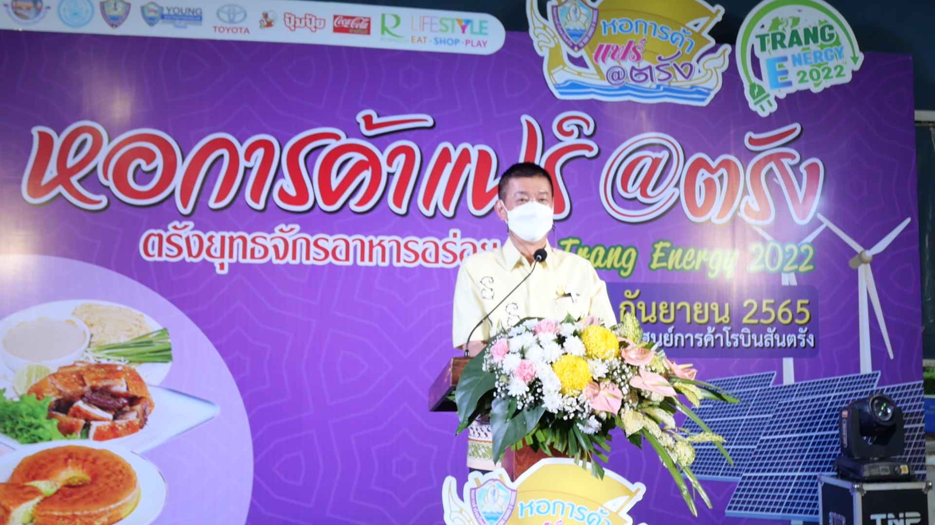 ที่ลานหน้าห้างโรบินสัน สาขาตรังนายขจรศักดิ์ เจริญโสภา ผู้ว่าราชการจังหวดตรัง เป็นประธานในพิธีเปิดงานหอการค้าแฟร์@ตรัง ครั้งที่ 2 และ Trang Energy 2022 ทั้งนี้ นายธีรวัฒน์ หวังศิริเลิศ ประธานหอการค้าจังหวัดตรัง กล่าวว่า จังหวัดตรังเป็นจังหวัดที่มีจุดเด่นในเรื่องของแหล่งท่องเที่ยว มีทรัพยากรธรรมชาติและสิ่งแวดล้อมที่อุดมสมบูรณ์ มีวัฒนธรรมและประเพณีต่างๆ ที่เป็นอัตลักษณ์โดดเด่น รวมถึงมีเมนูอาหารอร่อยหลากหลาย จนได้รับการขนานนามว่า “ตรังยุทธจักรอาหารอร่อย” จึงมีชื่อเสียงและเป็นที่รู้จักกันดีในหมู่นักท่องเที่ยว ปัจจุบันมีนักท่องเที่ยวทั้งชาวไทย และชาวต่างประเทศเข้ามาท่องเที่ยวที่จังหวัดตรังเพิ่มขึ้นเป็นจำนวนมาก โดยอุตสาหกรรมภาคการท่องเที่ยวและบริการ สามารถสร้างรายได้หลักและช่วยกระตุ้นศักยภาพทางเศรษฐกิจในพื้นที่