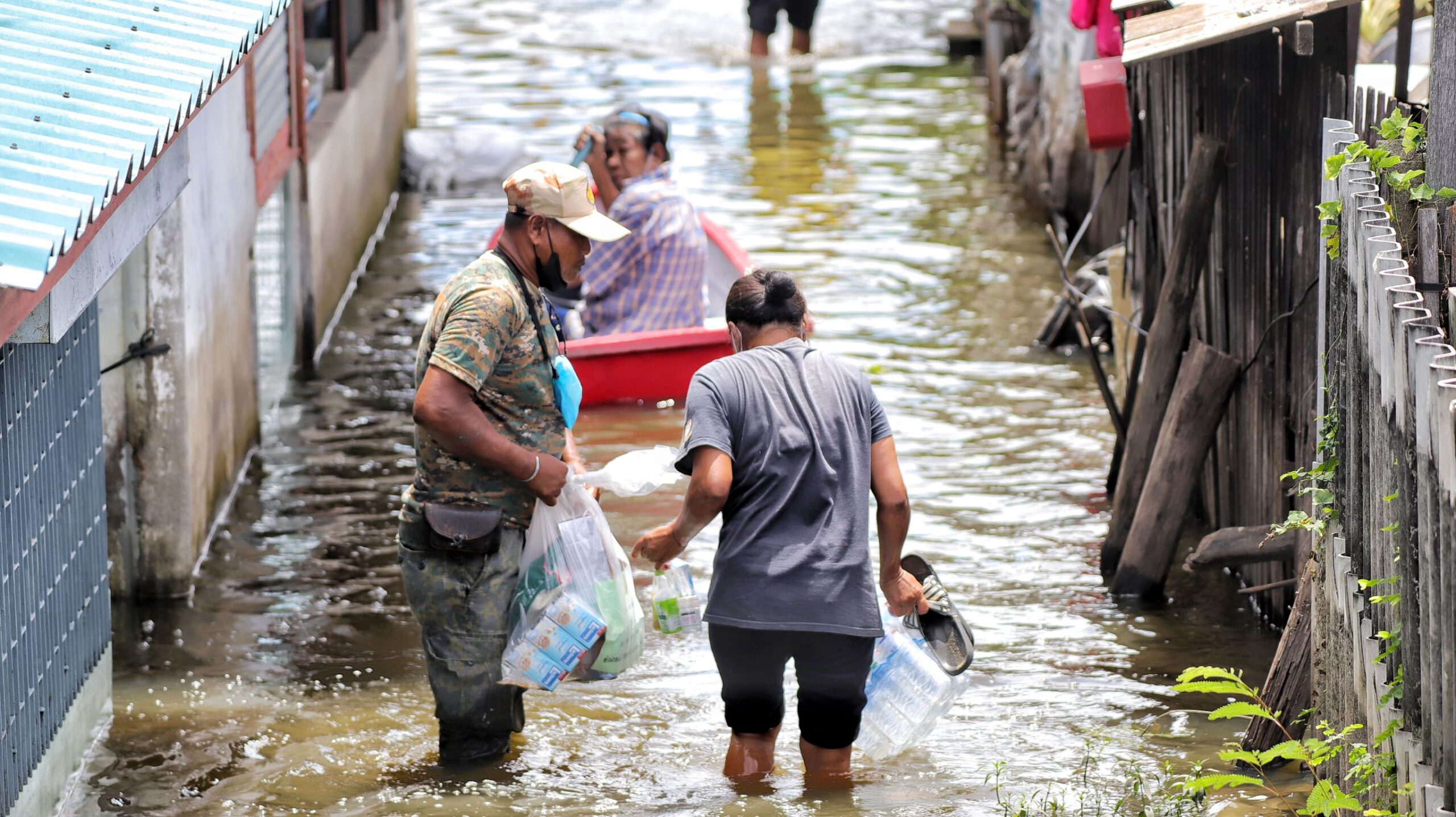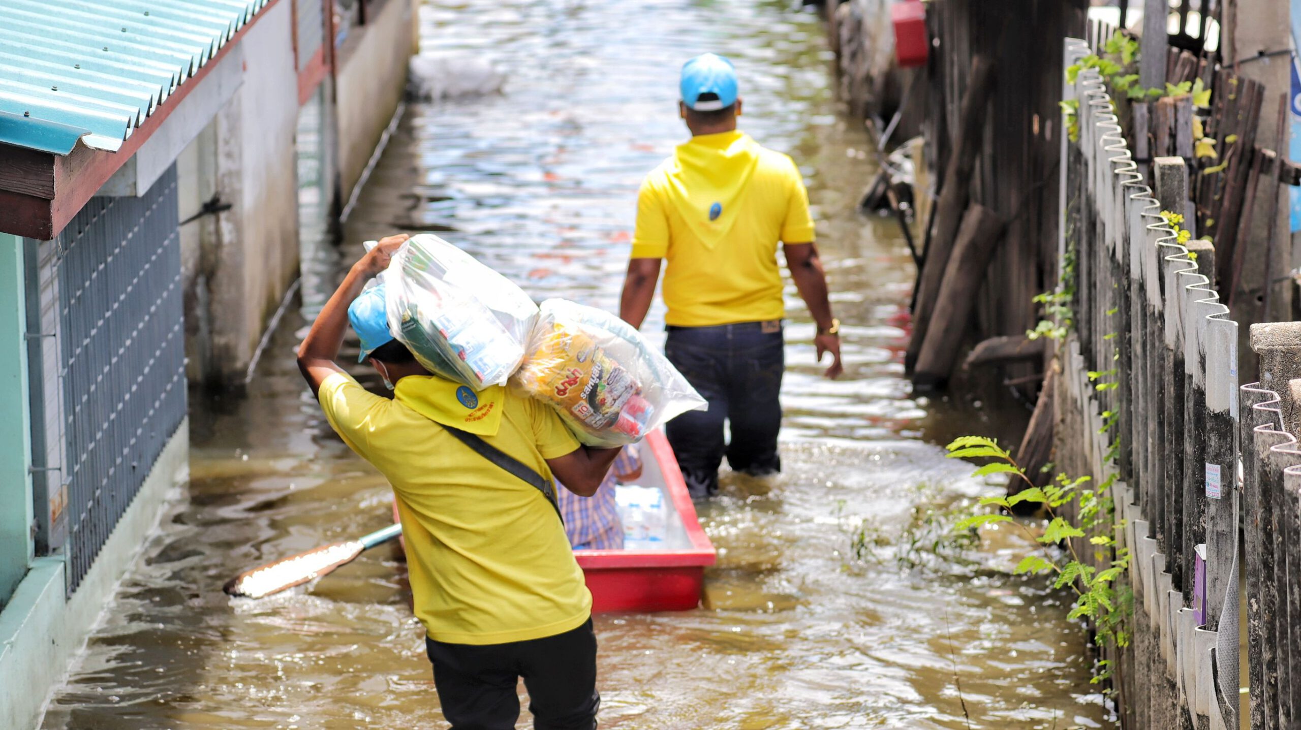 ทต.บางหลวง พร้อม จิตอาสา ฝ่ายปกครองเมืองปทุมธานี ลุยน้ำแจกถุงยังชีพยารักษาโรค400 ชุดให้ชาวบ้านที่ถูกน้ำท่วมเสียหาย
