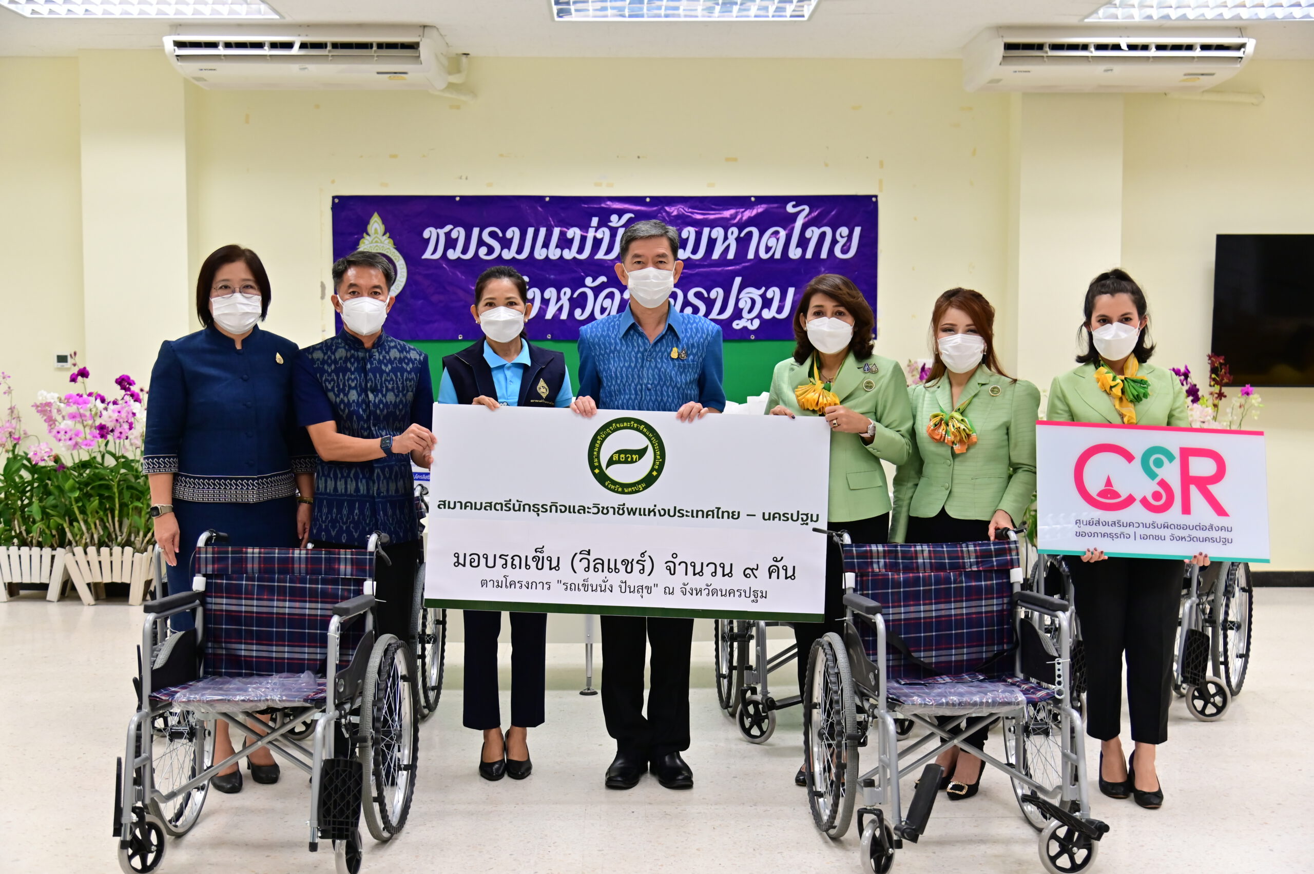 วันที่ 16 กันยายน 2565 ที่ห้องประชุมทับแก้ว ศาลากลางจังหวัดนครปฐม นายสุรศักดิ์ เจริญศิริโชติ ผู้ว่าราชการจังหวัดนครปฐม พร้อมด้วย นางวราภรณ์ เจริญศิริโชติ นายกเหล่ากาชาด/ประธานแม่บ้านมหาดไทยจังหวัดนครปฐม ปลัดจังหวัดนครปฐม และพัฒนาสังคมและความมั่นคงของมนุษย์จังหวัดนครปฐม ร่วมรับมอบรถเข็น หรือวีลแชร์ สำหรับผู้พิการ จำนวน 9 คัน พร้อมถุงยังชีพ จำนวน 20 ชุด จากสมาคมสตรีนักธุรกิจและวิชาชีพแห่งประเทศไทย จังหวัดนครปฐม นำโดยนางสาวณัฏฐ์ปภาณ จันทร์ละมูล นายกสมาคมฯ และประธานคณะทำงานศูนย์ส่งเสริมความรับผิดชอบต่อสังคมของภาคธุรกิจ เอกชน จังหวัดนครปฐม ซึ่งได้รับบริจาครถเข็น จากบริษัท ไมโครลิสซิ่ง จำกัด (มหาชน) ให้กับชมรมแม่บ้านมหาดไทยจังหวัดนครปฐม ตามโครงการรถเข็นนั่ง ปันสุข เฉลิมพระเกียรติสมเด็จพระนางเจ้าสิริกิติ์ พระบรมราชินีนาถ พระบรมราชชนนีพันปีหลวง เนื่องในโอกาสมหามงคลเฉลิมพระชนมพรรษา 90 พรรษา 12 สิงหาคม 2565