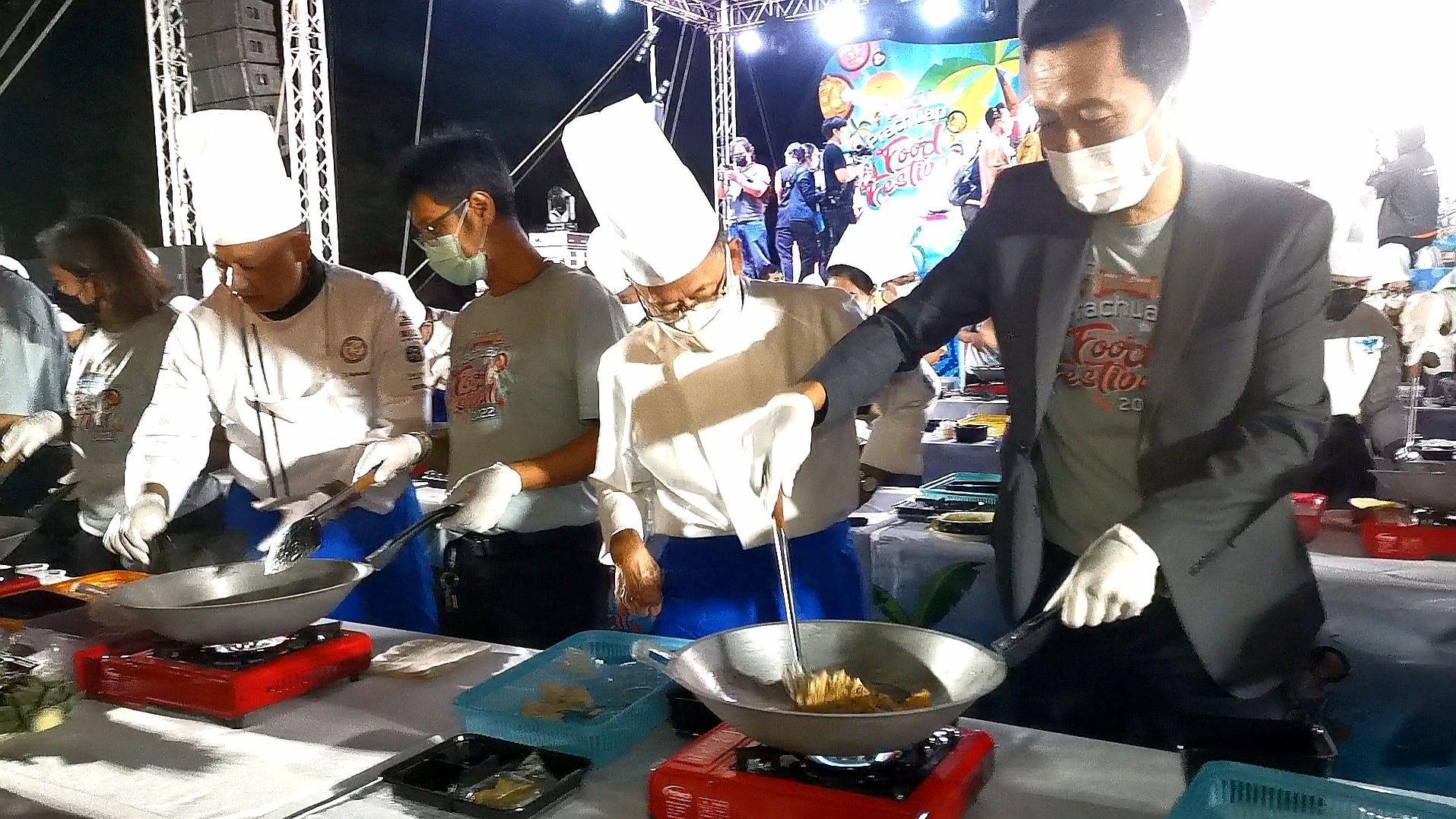 หลังพิธีเปิด ว่าที่ พ.ต.อนุศักดิ์ น้อยสุวรรณ รองผู้ว่าราชการจังหวัดประจวบคีรีขันธ์ พร้อมหัวหน้าส่วนราชการ แขกผู้มีเกียรติ ร่วม ทำเมนูเอกลักษณ์ประจำจังหวัดประจวบฯ “ข้าวผัดสับปะรดสามอ่าว” จำนวน 64 กระทะ จากเชฟระดับฝีมือดีที่ผัดแจกให้แขกผู้มีเกียรติและประชาชนทุกท่านที่มาร่วมงานได้ลองทานในบรรยากาศที่ใกล้ชิดติดทะเลเคลิ้มไปกับเสียงเพลง รวมถึงการโชว์การสาธิตการปรุงอาหารจากเชฟระดับมืออาชีพ