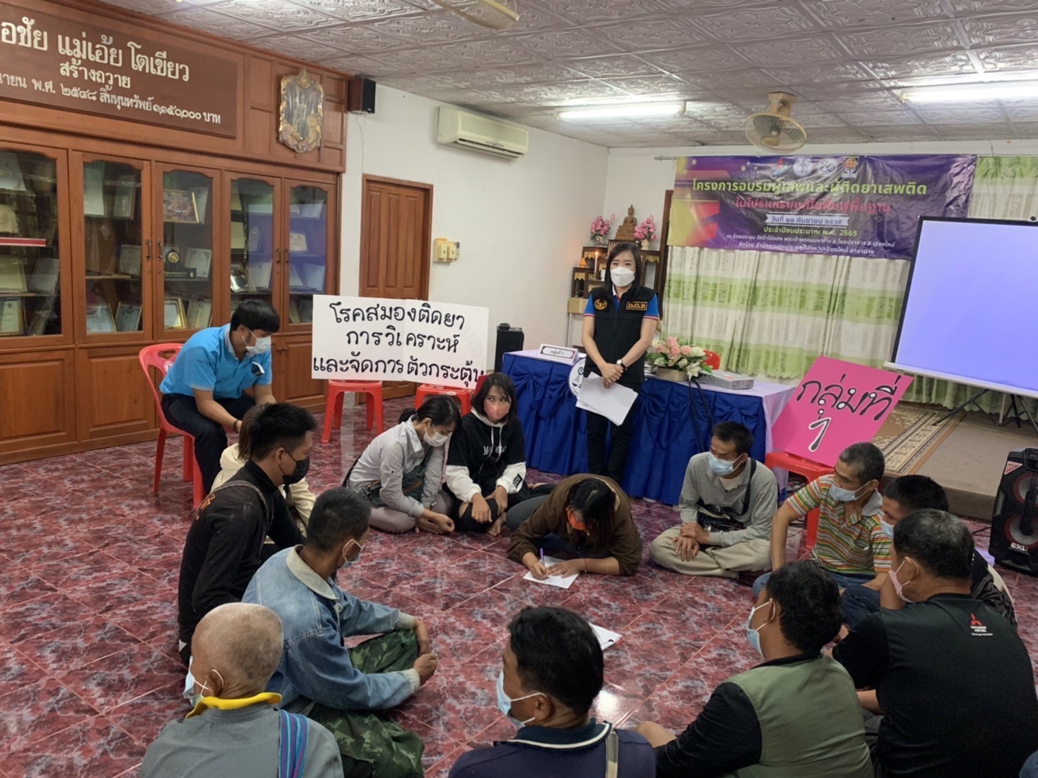 ทางสำนักงานคุมประพฤติจังหวัดเชียงใหม่สาขาฝางได้จัดทำโครงการอบรมฟื้นฟูผู้กระทำผิดเรื่องยาเสพติดในพื้นที่3อำเภอ ฝาง แม่อาย ไชยปราการ จังหวัดเชียงใหม่ จำนวน50คนมาร่วมในการอบรมฟื้นฟูให้เข้าใจเรื่องโทษยาเสพติดและการปฏิบัติตัวเองให้รอดจากขบวนการยาเสพติด ที่ห้องประชุม โตเขียว วัดป่าไม้แดง ตำบลหนองบัว อำเภอไชยปราการ จังหวัดเชียงใหม่