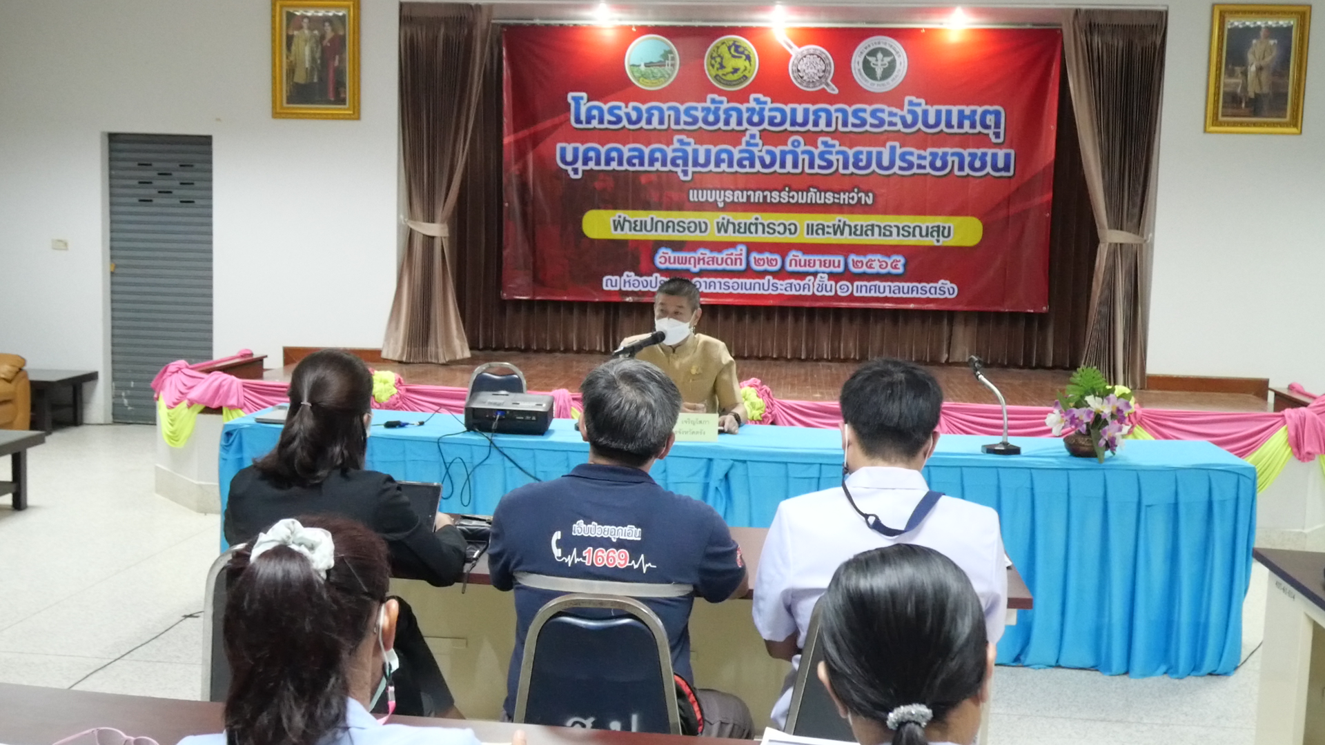 จังหวัดตรังจึงได้กำหนด ให้มีการประชุมหัวหน้าส่วนราชการ หัวหน้าหน่วยงาน และเจ้าหน้าที่ผู้เกี่ยวข้อง เพื่อซักซ้อม การระงับเหตุบุคคลคลุ้มคลั่งทำร้ายประชาชนขึ้นในวันนี้ กรณีที่ได้รับแจ้ง หรือพบบุคคลซึ่งมีพฤติการณ์อันน่าเชื่อว่า บุคคลผู้นั้นมีลักษณะ ผิดปกติทางจิต ขอให้พนักงานเจ้าหน้าที่ ฝ่ายตำรวจ ฝ่ายปกครอง และฝ่ายสาธารณสุข ได้ถือปฏิบัติให้เป็นไปตามพระราชบัญญัติสุขภาพจิต พ.ศ. 2551 สำหรับกรณีผู้ก่อเหตุมีความจำเป็น จะต้องได้รับการบำบัดรักษาในขณะนั้น ขอให้รีบดำเนินการส่งตัวบุคคลผู้นั้นให้สถานพยาบาล ของรัฐหรือสถานบำบัดรักษา ทำการตรวจวินิจฉัยและประเมินอาการในเบื้องต้นก่อน หากท่าน ปล่อยปละละเลยหรือเพิกเฉย ผู้ก่อเหตุอาจก่อเหตุร้ายกับประชาชนขึ้นซ้ำอีก ในฐานะที่ท่าน เป็นข้าราชการและเป็นพนักงานเจ้าหน้าที่จึงต้องปฏิบัติหน้าที่ให้เป็นไปตามที่กฎหมายกำหนดไว้ และเนื่องจากการแก้ไขปัญหากรณีดังกล่าวจะเกี่ยวข้องกับส่วนราชการและหน่วยงานหลายฝ่าย จึงจำเป็นต้องจัดให้มีการประชุมซักซ้อมความเข้าใจในรายละเอียดเกี่ยวกับอำนาจหน้าที่ ขั้นตอนและวิธีการทำงาน โดยจะมีการซักซ้อมการปฏิบัติจริงในเหตุการณ์ที่สมมุติขึ้น เพื่อให้ทุกท่านได้มีความรู้ความเข้าใจและทราบถึงบทบาทหน้าที่ของตน ป้องกันมิให้ข้อผิดพลาด ต่าง ๆ เกิดขึ้น โดยขอเน้นย้ำให้ทุกท่านได้พึงตระหนักว่า เราจำเป็นต้องรู้ถึงบทบาทหน้าที่ ของตนว่า ในแต่ละขั้นตอนนั้นเราจะต้องปฏิบัติตนอย่างไร ประการสำคัญ หากมีการแก้ไข เหตุผิดพลาดจนเกิดความเสียหายไปแล้ว เราจะไม่สามารถกลับไปดำเนินการแก้ไขเหตุดังกล่าวได้อีก นอกจากจะนำไปใช้เป็นบทเรียน (ราคาแพง) สำหรับการดำเนินงานในโอกาสต่อไป ตามคำกล่าวที่ว่า “ซ้อมให้เหมือนจริง… ปฏิบัติจริงให้เหมือนซ้อม