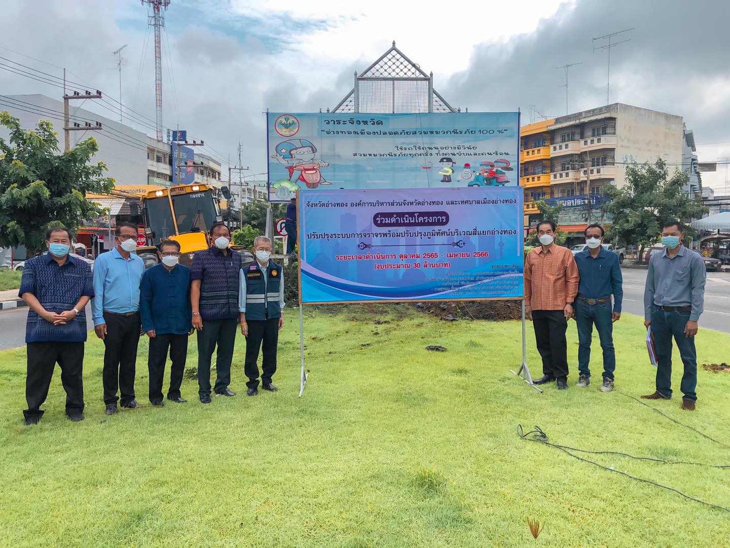 เมื่อวันที่ 22 กันยายน 2565 นายวีระศักดิ์ วิจิตร์แสงศรี ผู้ว่าราชการจังหวัดอ่างทอง พร้อมด้วยนายเตือนใจ ทรงไตร นายกเทศมนตรีเมืองอ่างทอง และคณะผู้บริหารเทศบาลเมืองอ่างทอง บุคลากรในสังกัด จังหวัดอ่างทอง องค์การบริหารส่วนจังหวัดอ่างทอง และเจ้าหน้าที่ที่เกี่ยวข้องของเทศบาลเมืองอ่างทอง เตรียมการดำเนินโครงการ ปรับปรุงระบบการจราจร และปรับปรุงภูมิทัศน์ ภาพลักษณ์บริเวณสี่แยกเมืองอ่างทอง ใหม่