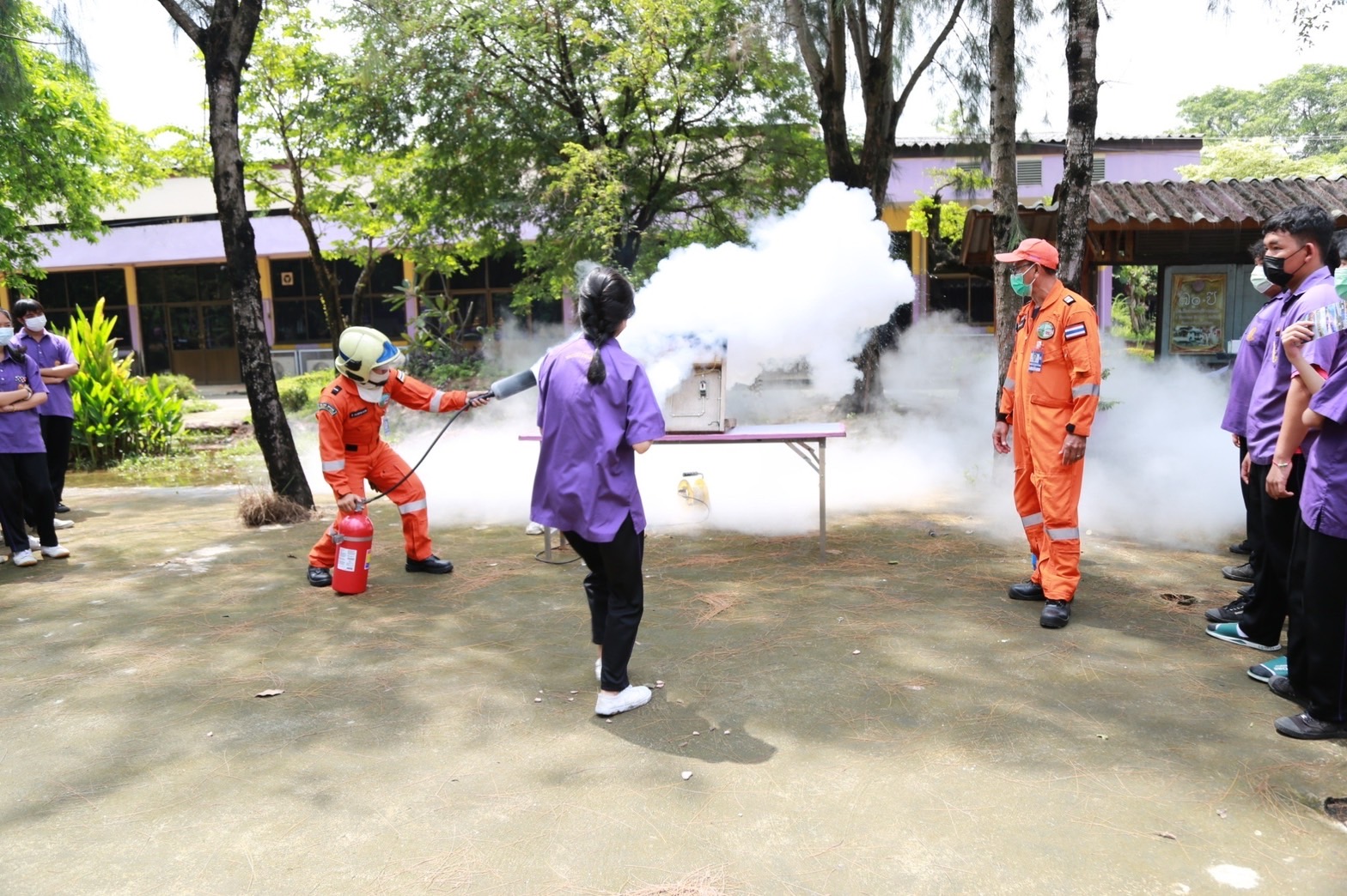 ***** นอกจากการให้ความรู้ทั้งทางภาคทฤษฎีและปฏิบัติด้านการดับเพลิงเบื้องต้นเมื่อเกิดอัคคีภัยแล้ว ทสภ. ยังได้มอบเครื่องดับเพลิงขนาด 10 ปอนด์ให้แก่โรงเรียนพรตพิทยพยัต และชุมชนหลวงพรตท่านเลี่ยม รวม 10 ถัง เพื่อเป็นการเตรียมความพร้อมอุปกรณ์ดับเพลิงภายในโรงเรียนและชุมชนด้วย