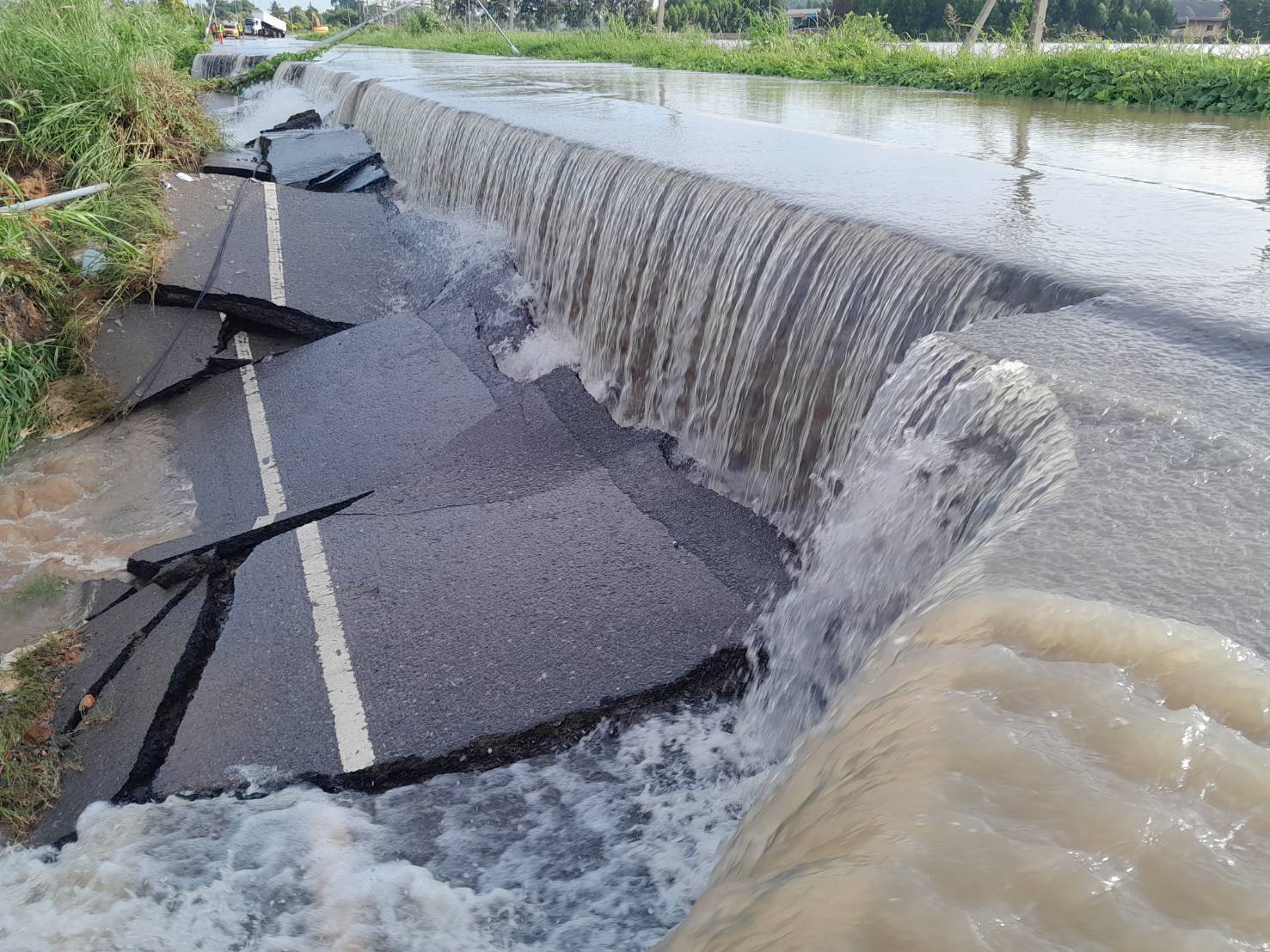 อ่างทอง น้ำทะลักท่วมถนนพัง ชาวบ้านหวั่นวิกฤติ