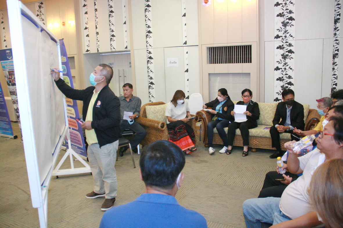 จากนั้น ได้แลกเปลี่ยนและระดมความคิดเห็นในประเด็นคำถาม “ทิศทางและจังหวะก้าวปี 2566 ขบวนองค์กรชุมชนจะเตรียมความพร้อมอย่างไร” ของกลุ่มจังหวัดในพื้นที่ภาคกลางและตะวันตก พบว่า สถานการณ์ที่ผ่านมา ถึงแม้ว่าขบวนองค์กรชุมชนจังหวัดจะมีการเชื่อมโยงความร่วมมือกับภาคีพัฒนาในการหนุนเสริมและพัฒนาชุมชนท้องถิ่น แต่การขับเคลื่อนการป้องกันและต่อต้านการทุจริตของภาคประชาชนยังต้องอาศัยระยะเวลาในการสร้างความเข้าใจกับพื้นที่ปฏิบัติการระดับตำบล ประกอบกับการสร้างการยอมรับกับภาคีพัฒนาในพื้นที่อย่างต่อเนื่อง จึงได้วางแนวทางการขับเคลื่อนงานออกเป็น 3 ระดับ ได้แก่ (1) ระดับกลุ่มจังหวัด มีแนวทางในการสร้างพื้นที่กลางการแลกเปลี่ยนเรียนรู้ร่วมกันระหว่างจังหวัด ไม่ว่าจะเป็นการกำหนดเป้าหมาย/ ทิศทาง ออกแบบการทำงาน และวางระบบการติดตามหนุนเสริมแบบธรรมาภิบาล (2) ระดับจังหวัด มีแนวทางในการเชื่อมโยงตำบลและขยายเครือข่ายหุ้นส่วนการพัฒนาทั้งภายใน/ ภายนอก เช่น สถาบันการศึกษา สำนักงาน ป.ป.ท. สำนักงาน ป.ป.ช. ชมรม STRONG-จิตพอเพียงต้านทุจริต เป็นต้น เพื่อสร้างการมีส่วนร่วมในการวิเคราะห์ข้อมูล วางแผนการทำงาน ออกแบบเครื่องมือ พัฒนาศักยภาพแกนนำชุมชนและเครือข่าย และขยายผลการสื่อสารอย่างเป็นสาธารณะ และสุดท้าย (3) ระดับตำบล มีแนวทางในการขยายผลการป้องกันและต่อต้านการทุจริตให้เกิดเป็นรูปธรรม ไม่ว่าจะเป็นการพัฒนากลไกที่มีส่วนผสมของคนก่อการดีและเครือข่ายความร่วมมือ กำหนดเป้าหมายร่วม จัดทำแผนและปฏิบัติงานร่วมในระดับตำบล โดยมีพี่เลี้ยงหรือครู ก. ที่มาจากตำบลที่เคยรับงบประมาณจากปี 2564 – 2565 คอยให้คำปรึกษาและหนุนเสริมการทำงานร่วมกัน