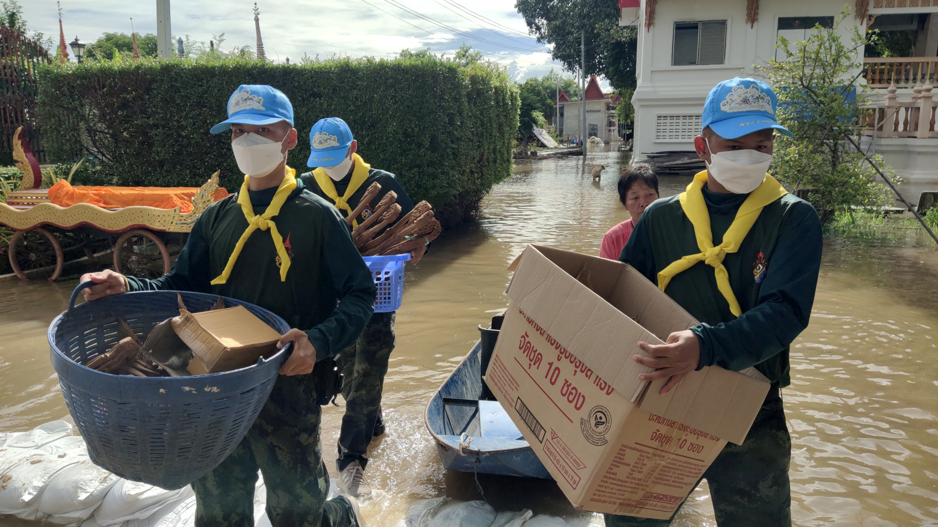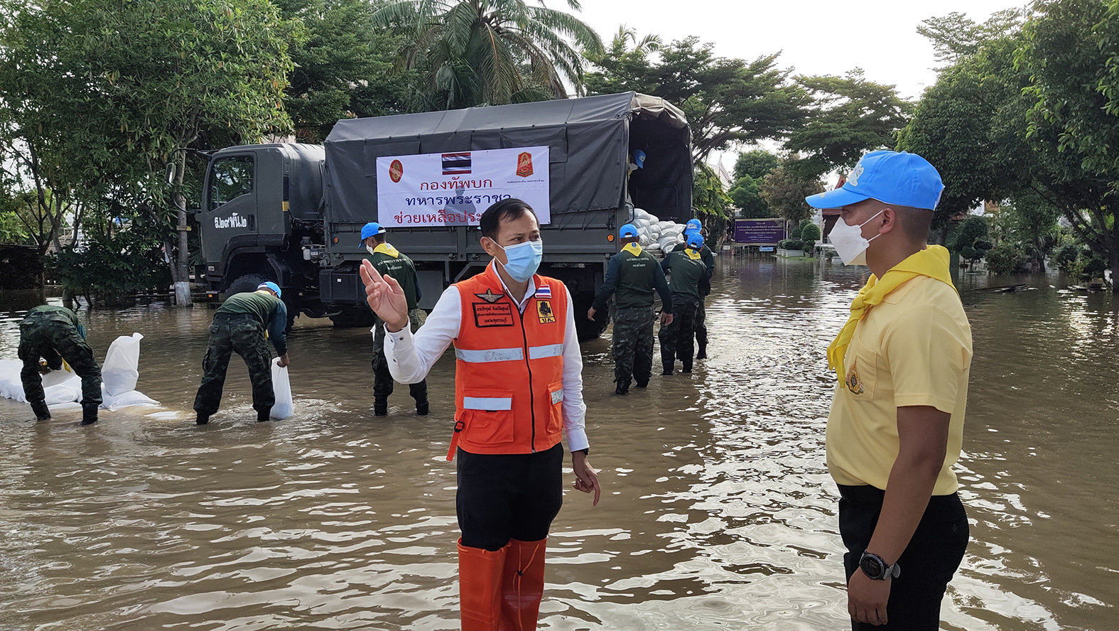 สุพรรณบุรี รมช.ประภัตร ลงพื้นที่แก้ปัญหาผักตบชวาทหารนำกำลังช่วยป้องน้ำท่าจีนท่วมวัดดัง