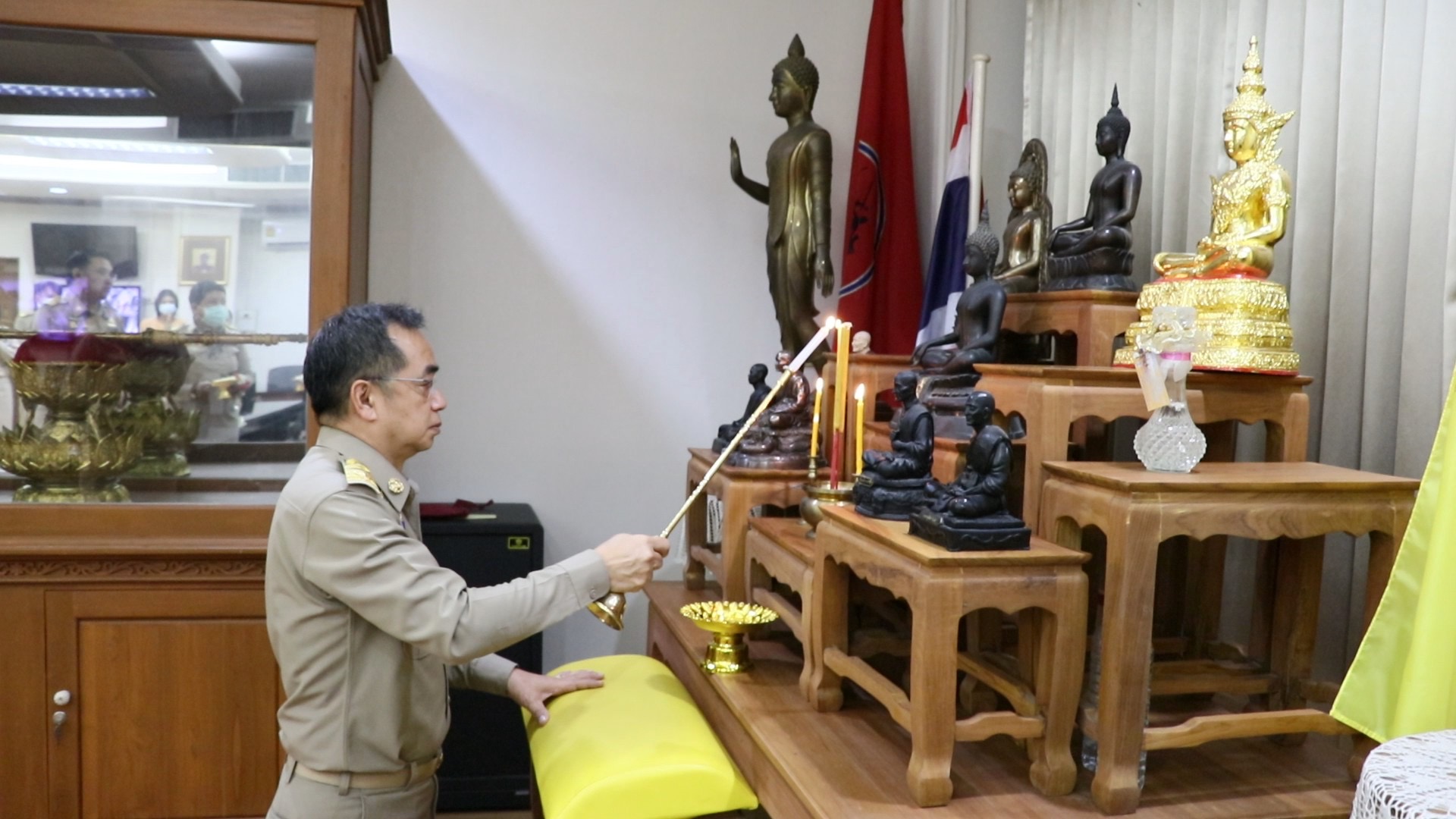 ผู้ว่าราชการจังหวัดสิงห์บุรีคนใหม่ สักการะสิ่งศักดิ์สิทธิ์ก่อนเข้าห้องปฏิบัติงานราชการวันแรก