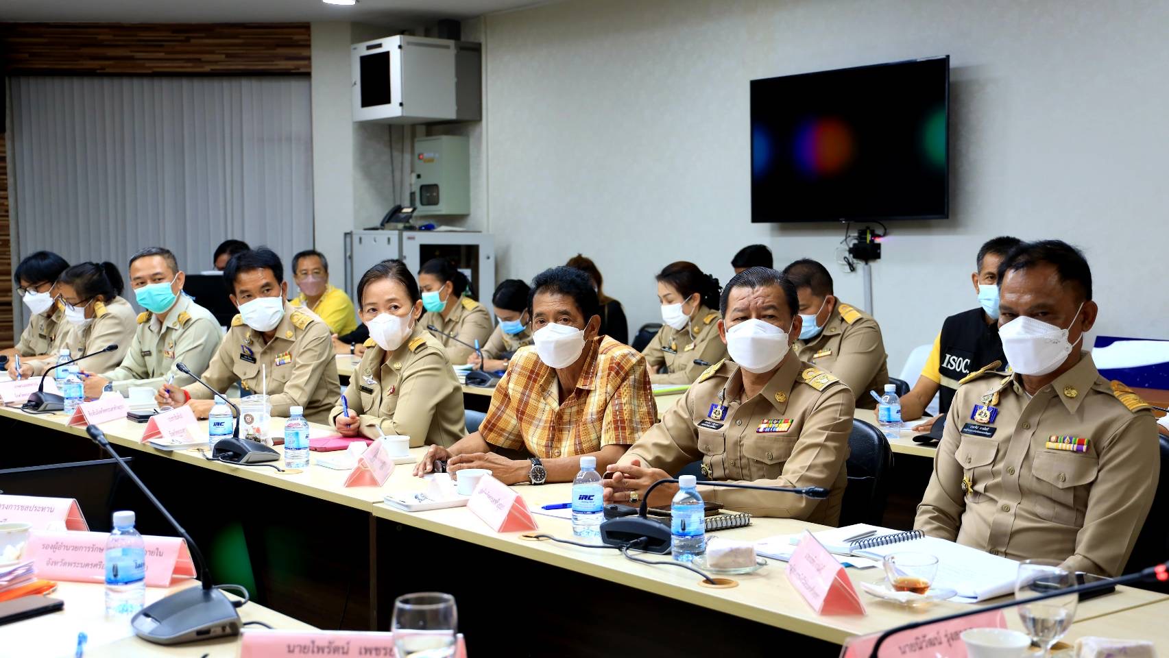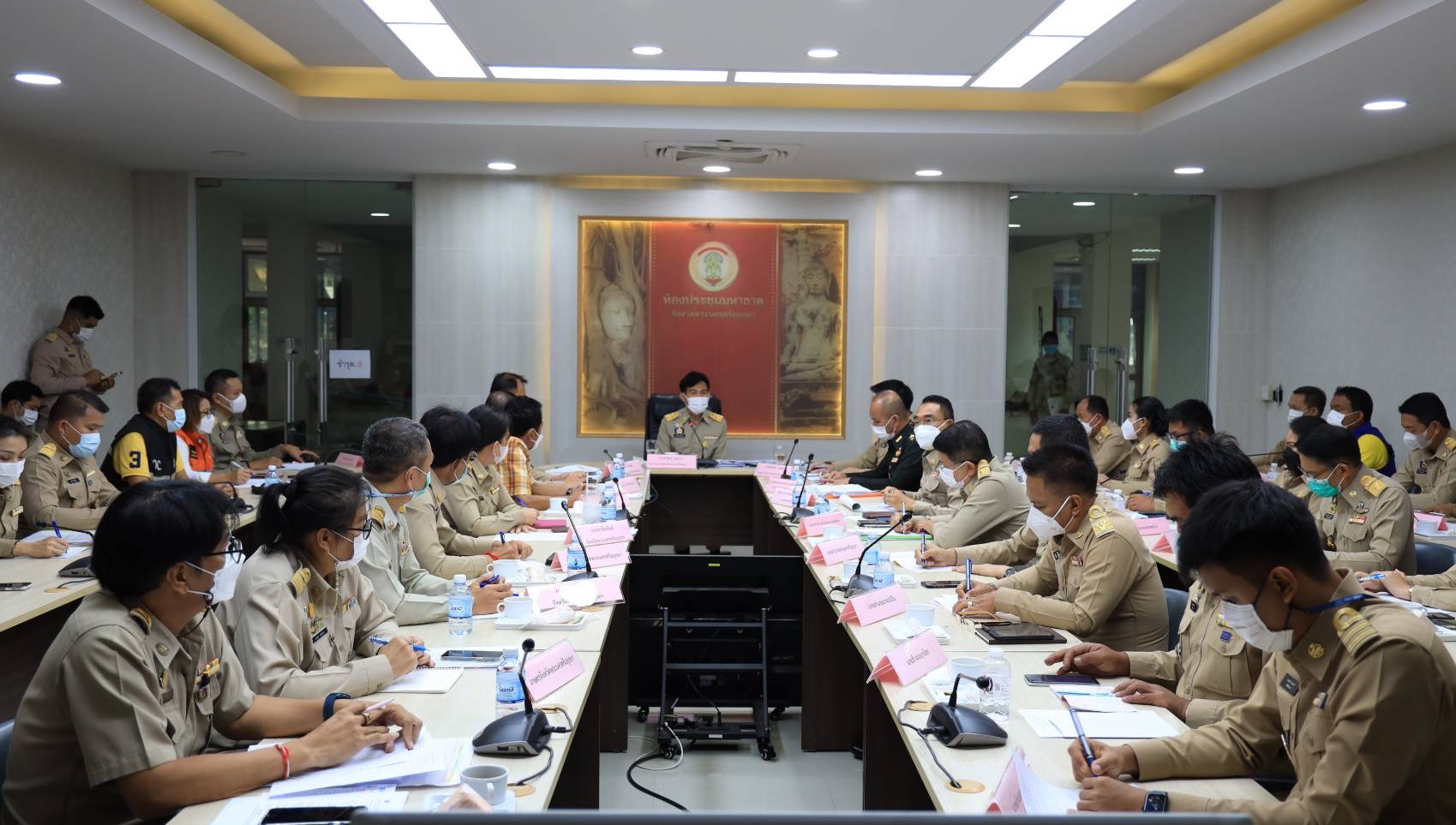 โดยมี นายสุทธิพงษ์ จุลเจริญ ปลัดกระทรวงมหาดไทย นายชัยวัฒน์ ชื่นโกสุม รองปลัดกระทรวงมหาดไทย นายพรพจน์ เพ็ญพาส รองปลัดกระทรวงมหาดไทย นายสมคิด จันทมฤก รองปลัดกระทรวงมหาดไทย นายโชตินรินทร์ เกิดสม รองปลัดกระทรวงมหาดไทย นายบุญธรรม เลิศสุขีเกษม อธิบดีกรมป้องกันและบรรเทาสาธารณภัย นายแมนรัตน์ รัตนสุคนธ์ อธิบดีกรมการปกครอง นายชยาวุธ จันทร อธิบดีกรมที่ดิน นายอรรษิษฐ์ สัมพันธรัตน์ อธิบดีกรมการพัฒนาชุมชน นายขจร ศรีชวโนทัย อธิบดีกรมส่งเสริมการปกครองท้องถิ่น นายพงษ์รัตน์ ภิรมย์รัตน์ อธิบดีกรมโยธาธิการและผังเมือง พร้อมด้วยหัวหน้าส่วนราชการที่เกี่ยวข้อง อาทิ กระทรวงกลาโหม กรมอุตุนิยมวิทยา สำนักงานพัฒนาเทคโนโลยีอวกาศและภูมิสารสนเทศ (องค์การมหาชน) หรือ GISTDA สถาบันสารสนเทศทรัพยากรน้ำ (องค์การมหาชน) กรมประชาสัมพันธ์ ประชุมร่วมกับผู้ว่าราชการจังหวัดทุกจังหวัดและกรุงเทพมหานคร